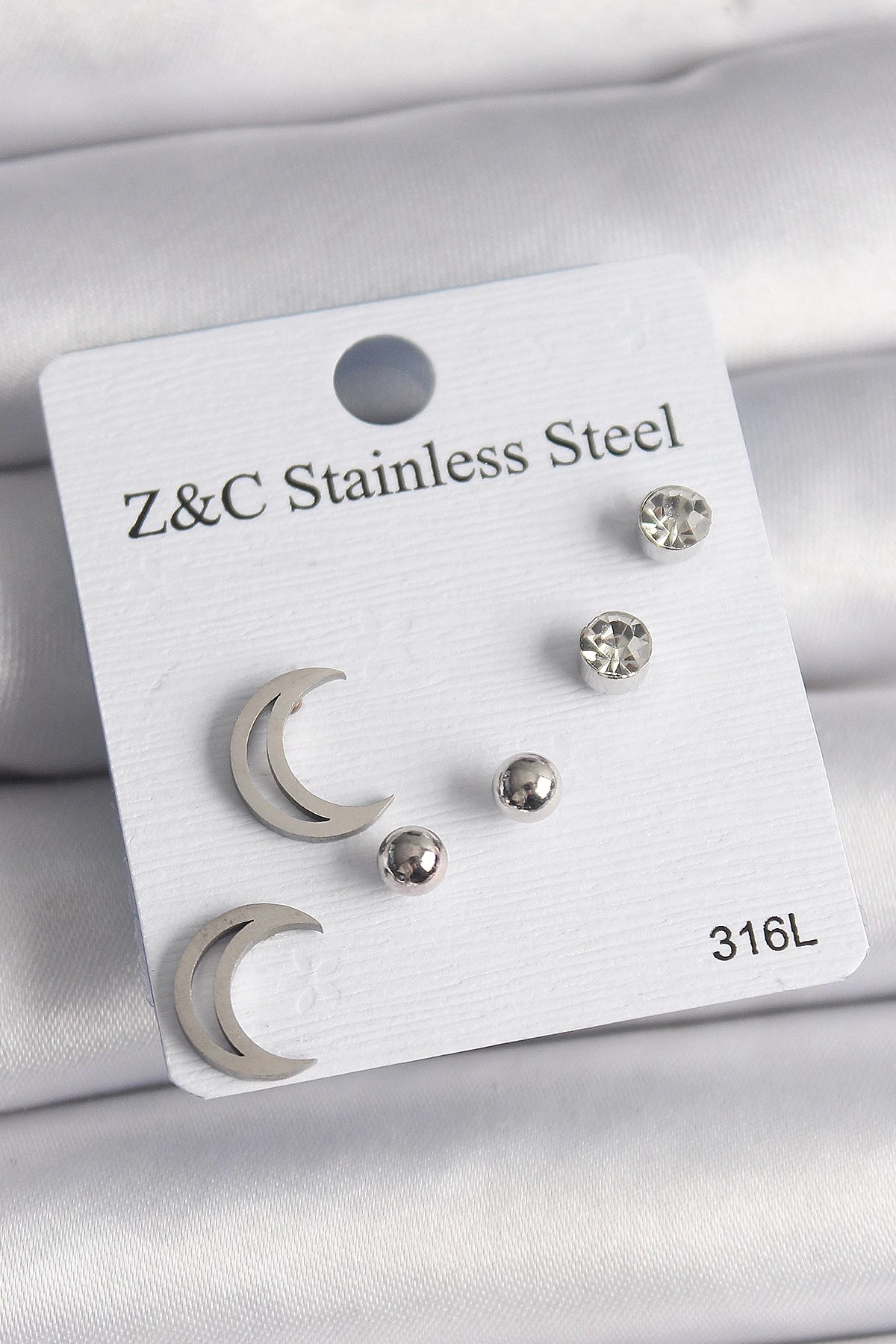 Mey İthalat® Pirinç Gümüş Renk Leopar Desenli Kare Model Kadın Küpe