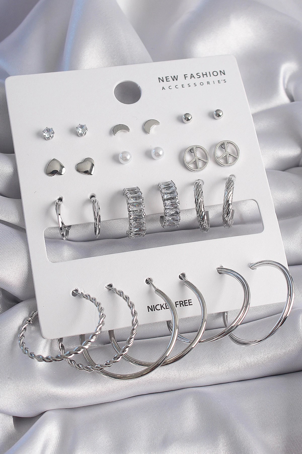 Mey İthalat® Pirinç Gümüş Renk Sallantı Zirkon Taşlı Ağaç Figür Çoklu Kadın Küpe Seti