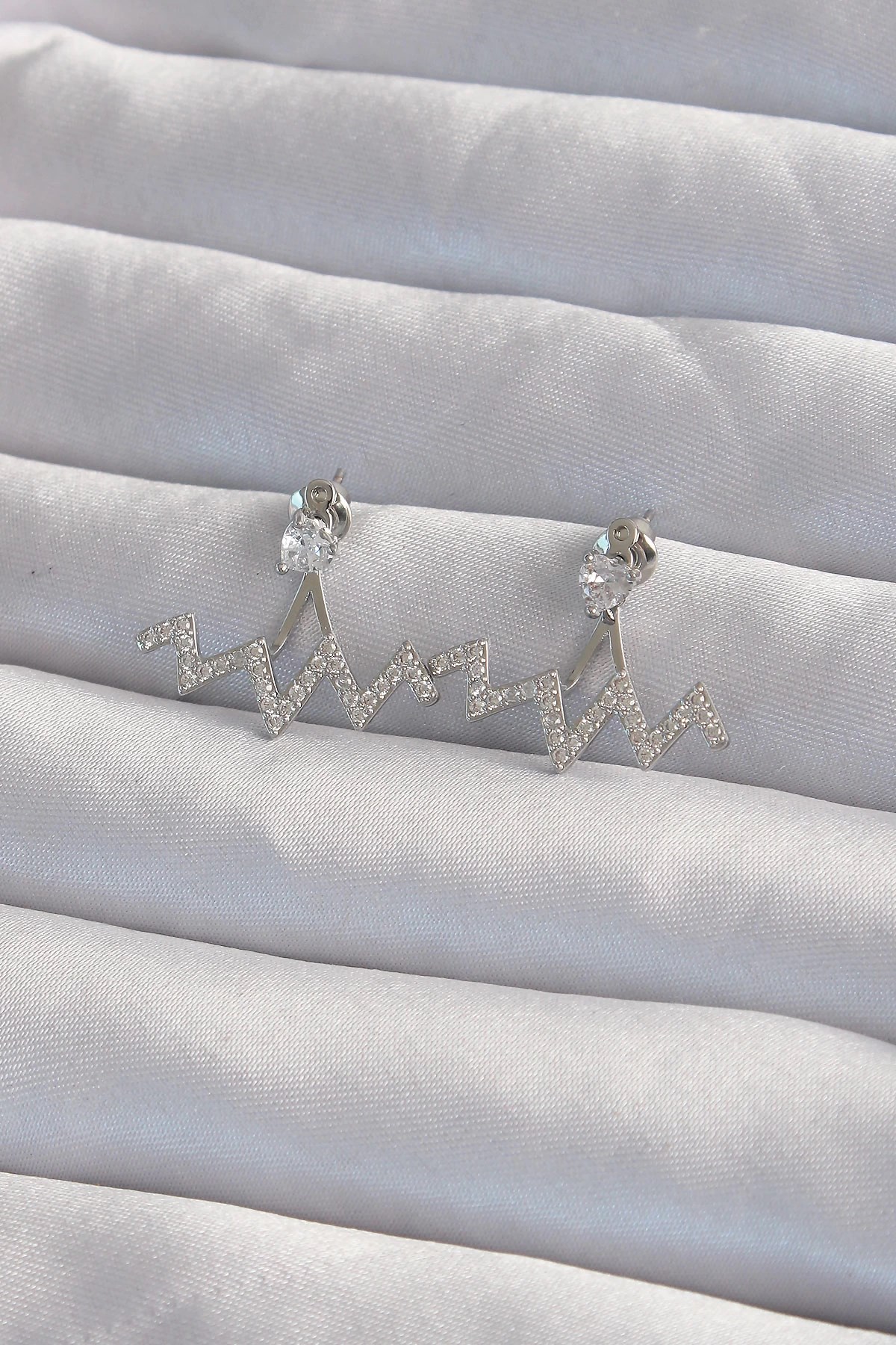 Mey İthalat® Pirinç Gümüş Renk Zirkon Taşlı Halka Model Sallantı Yıldız Detay Kadın Küpe