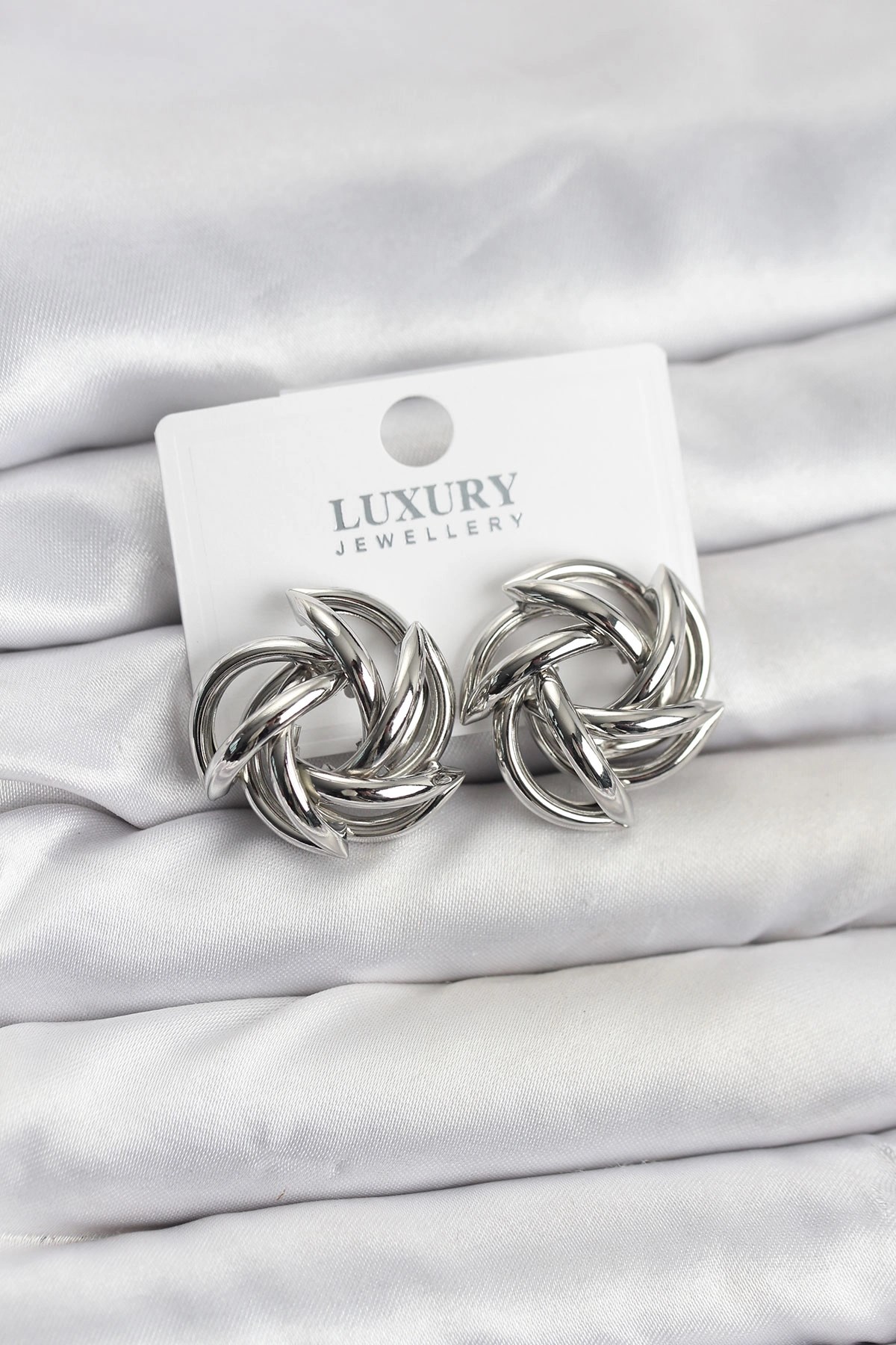 Mey İthalat® Pirinç Gümüş Renk Zirkon Taşlı İşleme Detay Halka Model Kadın Küpe