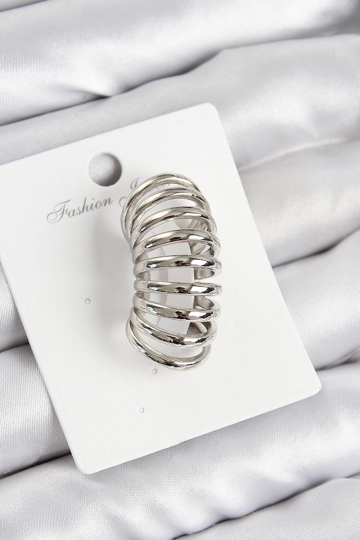 Mey İthalat® Pirinç Gümüş Renk Zirkon Taşlı Kadın Küpe
