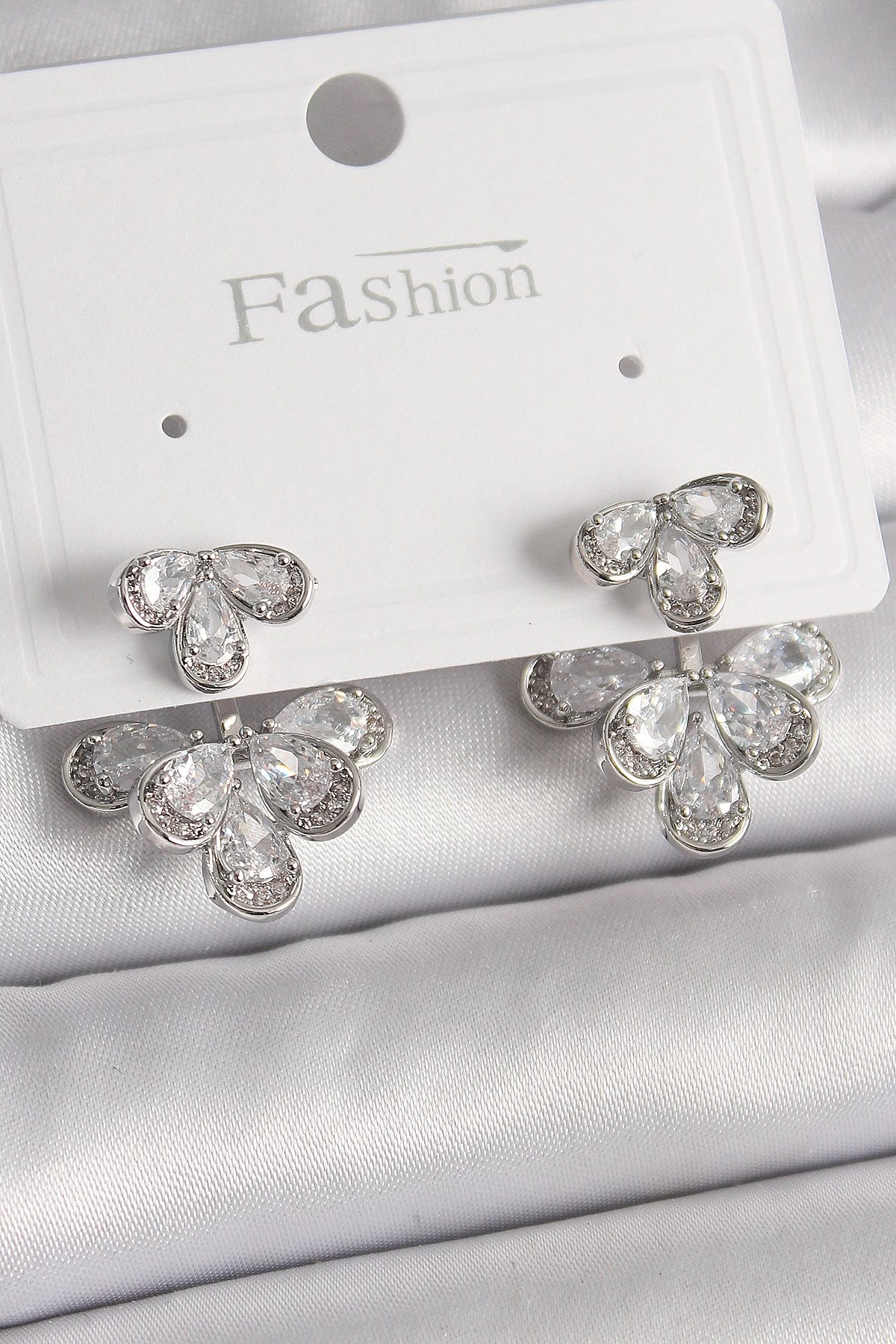 Mey İthalat® Pirinç Gümüş Renk Zirkon Taşlı Kelebek Model Kadın Küpe