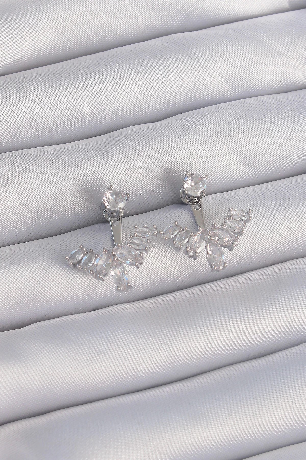 Mey İthalat® Pirinç Gümüş Renk Zirkon Taşlı Minimal Deniz Kabuklu Sallantılı Küpe
