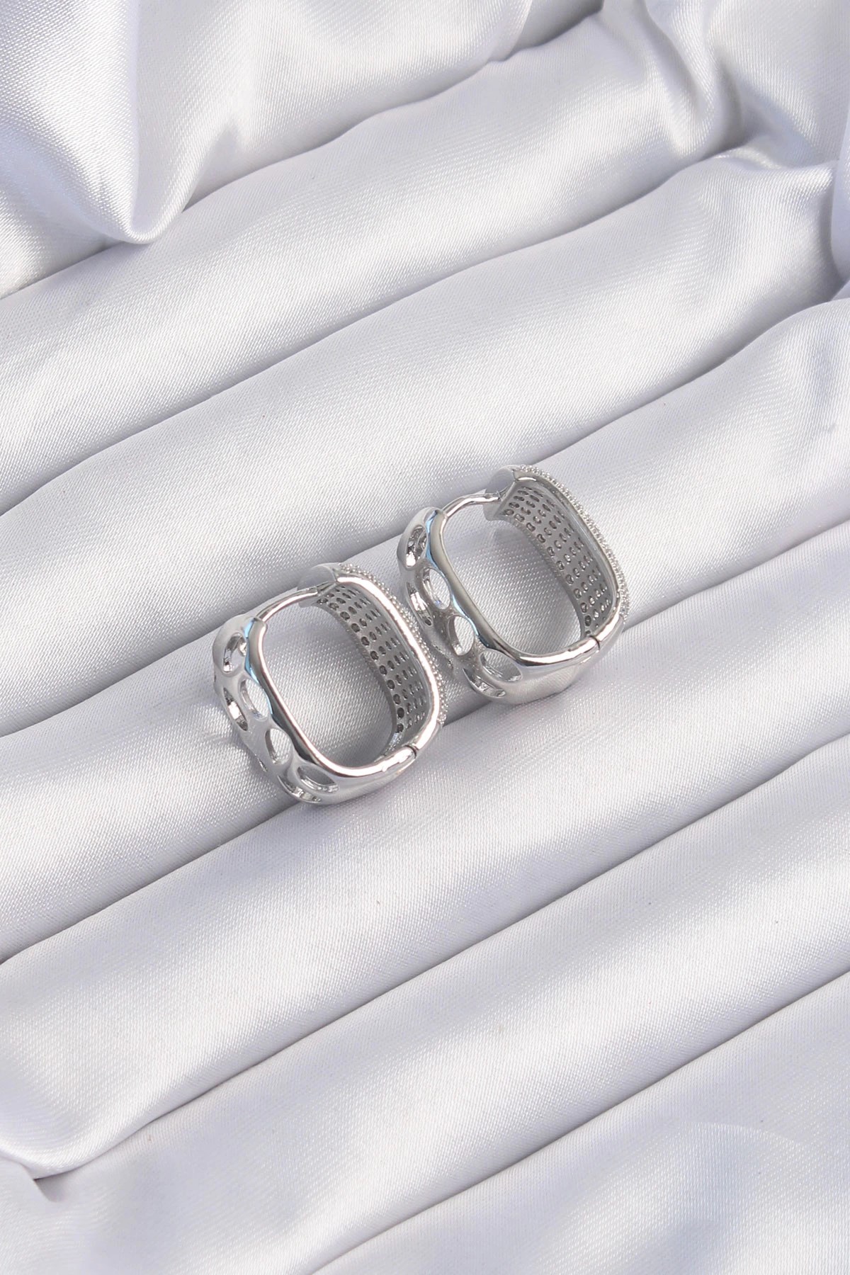 Mey İthalat® Pirinç Gümüş Renk Zirkon Taşlı Minimal Halka Küpe