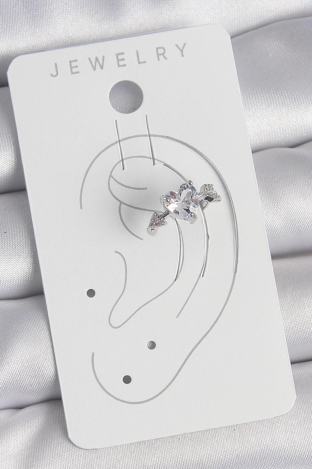 Mey İthalat® Pirinç Gümüş Renk Zirkon Taşlı Yıldız Model Kadın Kıkırdak Küpe