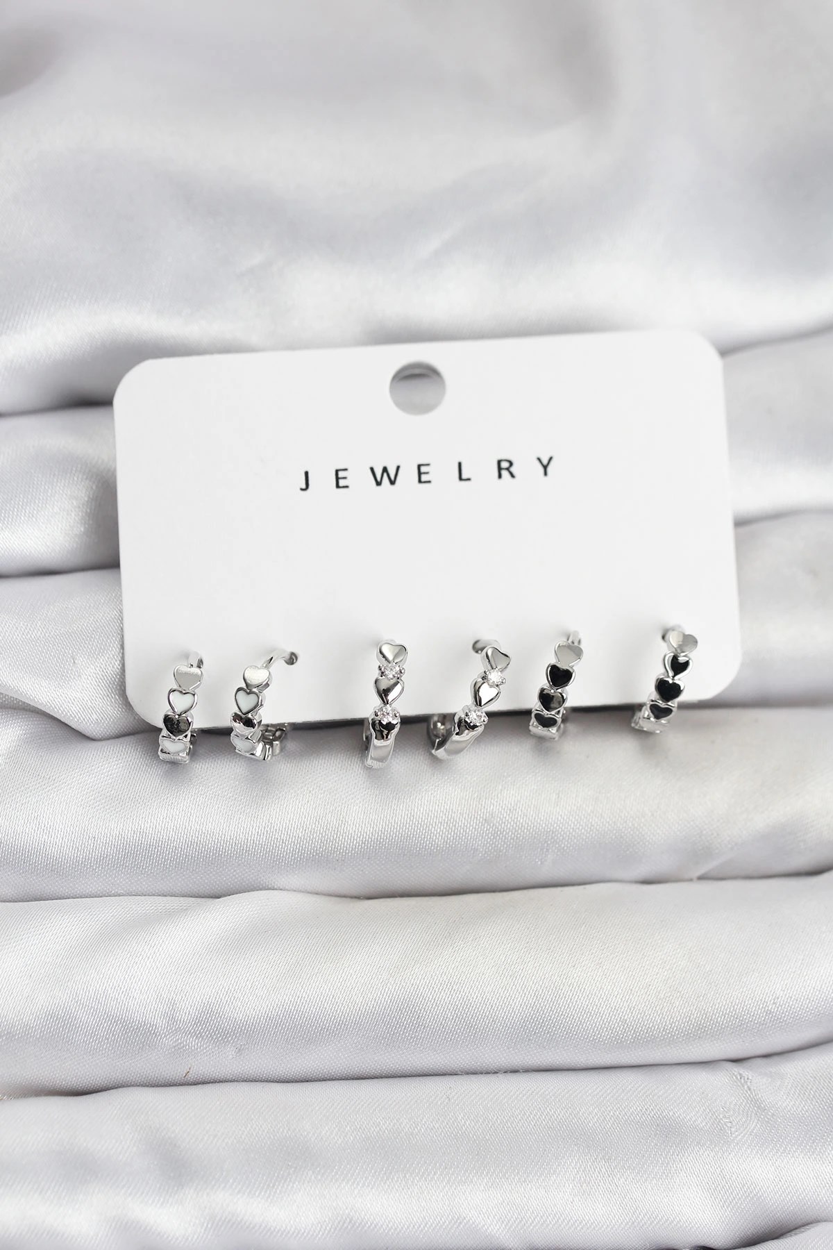 Mey İthalat® Pirinç Siyah Renk Leopar Desen 3D Kalp Model Kadın Küpe