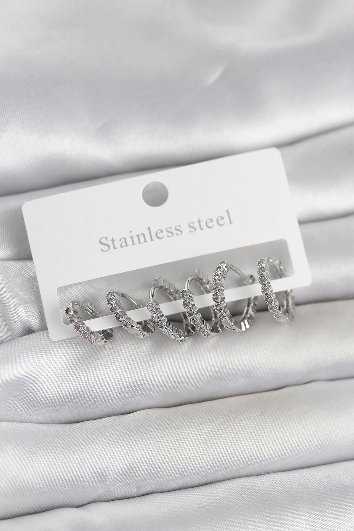 Mey İthalat® Pirinç Zİrkon Taşlı Sallantılı Model Gold Renk 3'lü Kadın Küpe