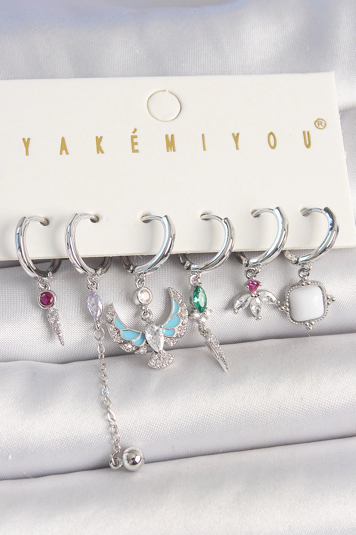 Mey İthalat® Pirinç Zirkon Taşlı Yıldız Model Gümüş Renk 3'lü Çift Kadın Küpe Set