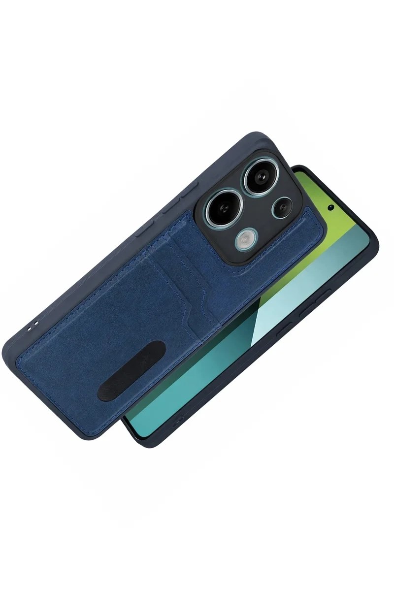 Mey İthalat® Redmi 15C 4G Sara Kartvizitli Deri Kılıf - Lacivert