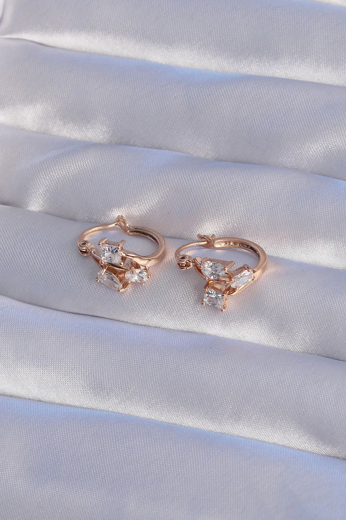 Mey İthalat® XUPİNG Rose Renk Zirkon Taşlı Halka Küpe