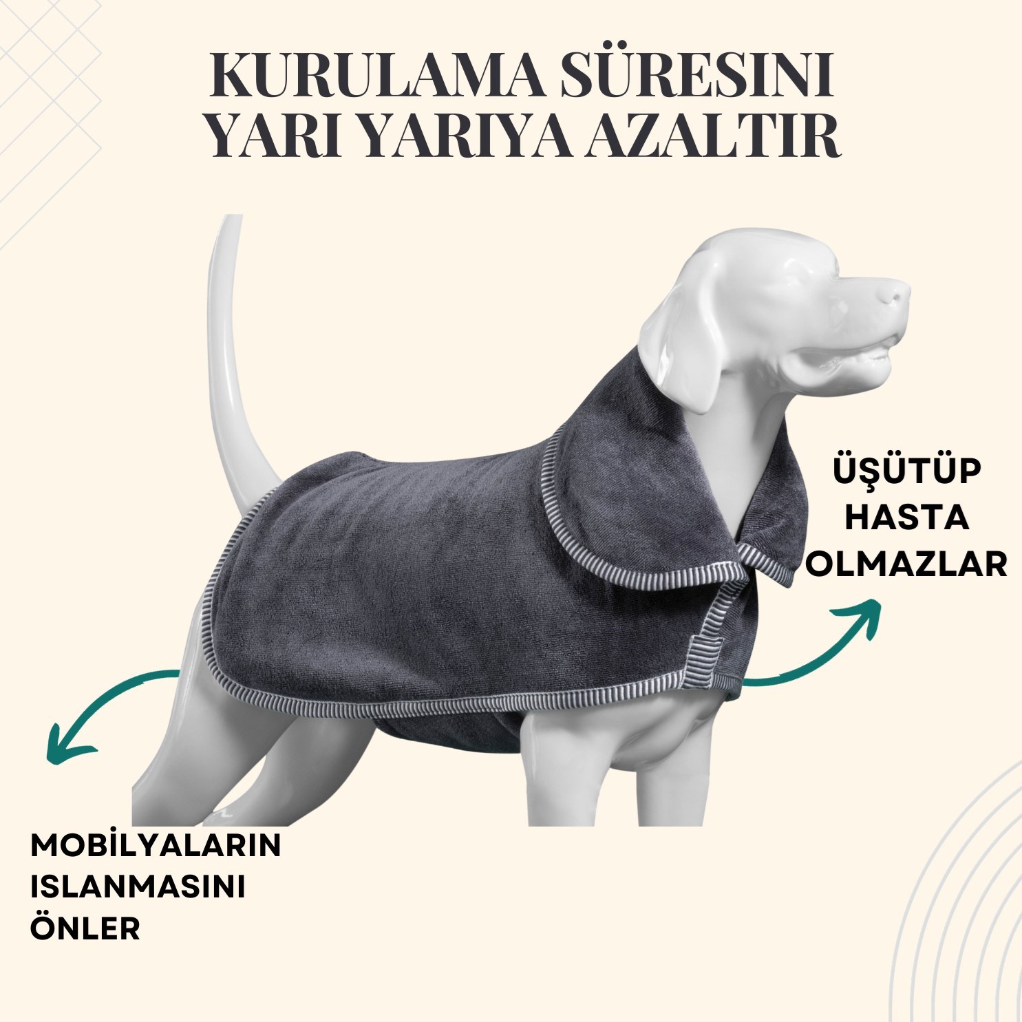 Bu sayede hem köpeğiniz tam anlamıyla kurulanmış ve rahatlamış hisseder hem de mobilyalarınız yıpranmadan ;