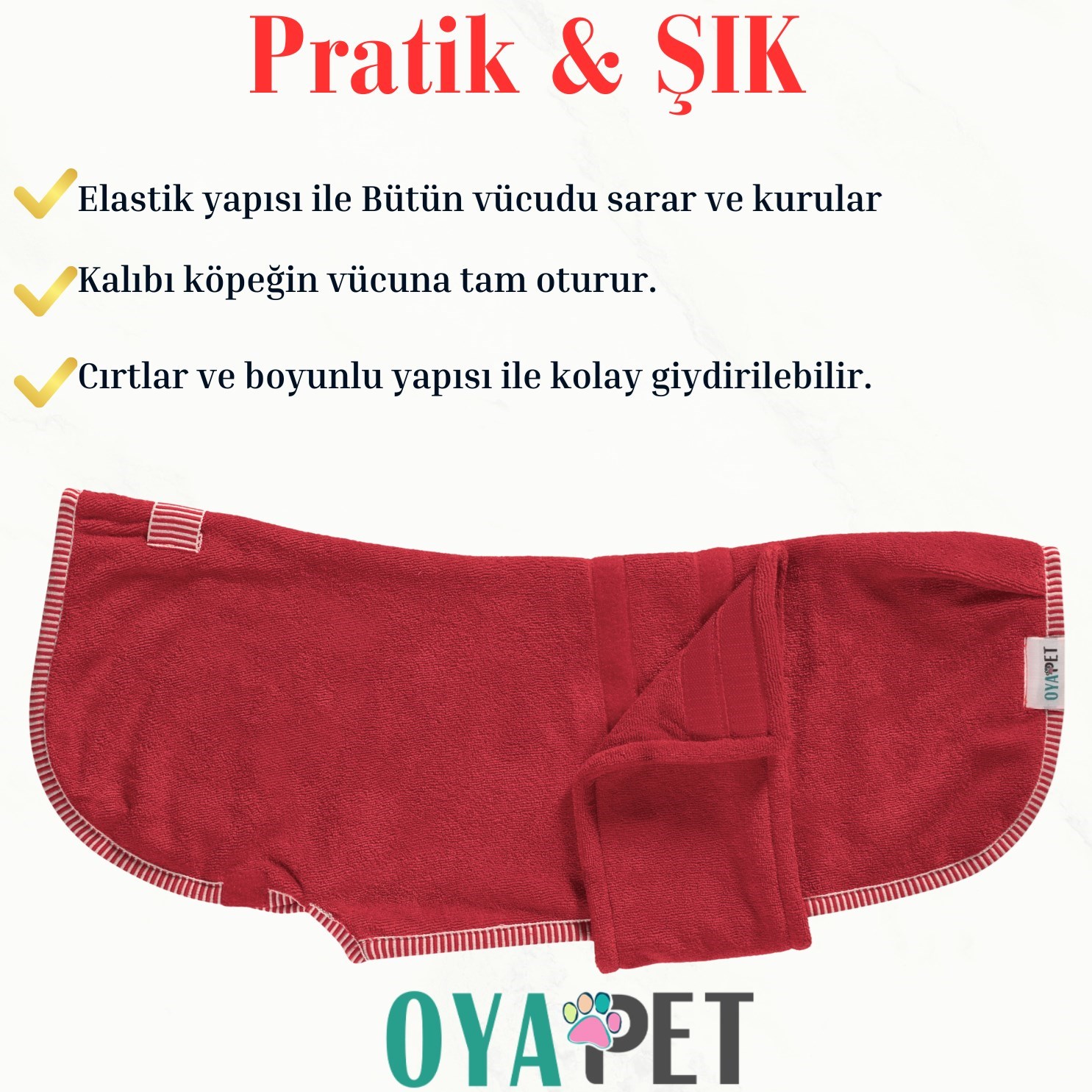 Islak/Nemli köpeğinize bel çevresinde ayarlanabilir cırt bant sayesinde kolay giydirme avantajı sunarken köpeğinizin hızlı kurumasına tanıklık edeceksiniz.