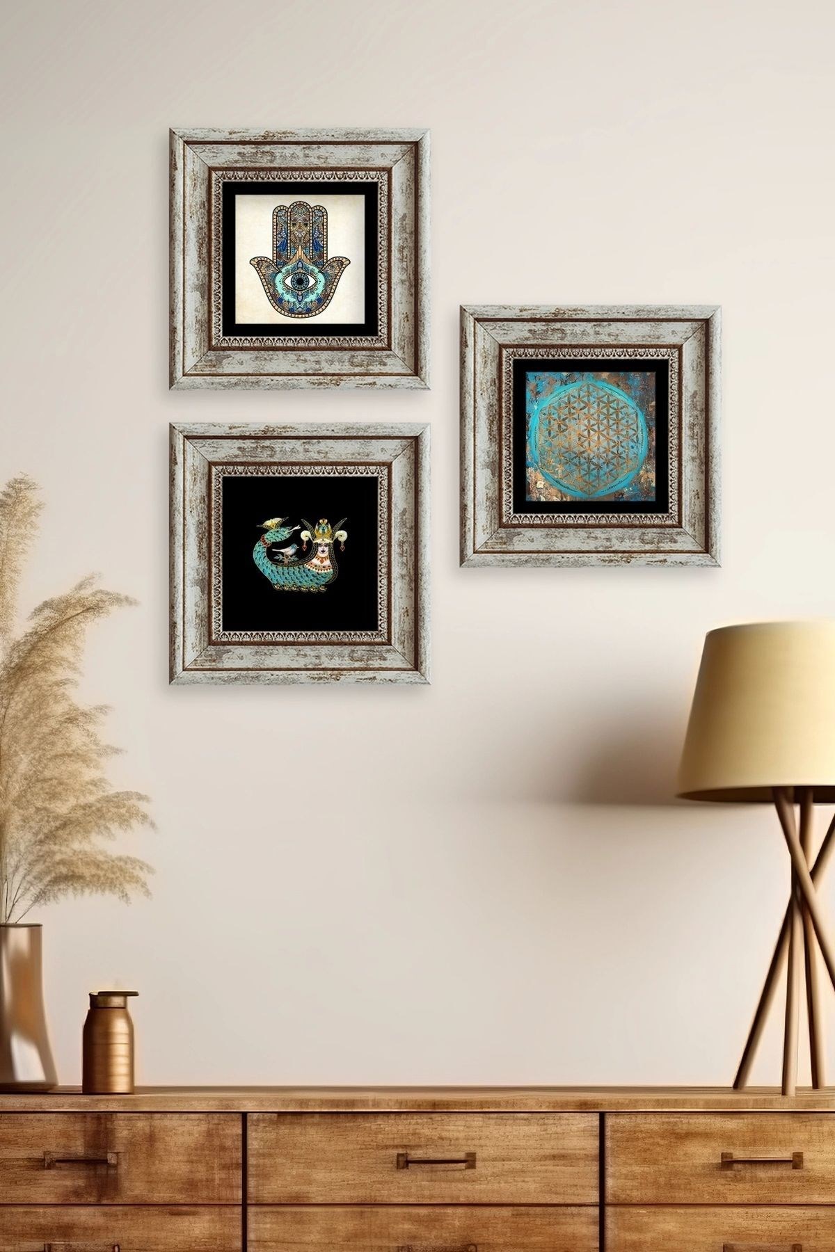 Ürün hakkında: Her Tablonun Ölçüleri: 20 cm x 20 cm veya 30 cm x 30 dir. ; Kalınlık :2,5 cm'dir. ; Ürünün arka tarafında askı aparatı bulunmaktadır. ; Kullanılan çerçeveler yüksek kaliteli, eskitme görünümlü kompozit malzemeden üretilmiştir. ; Taşların yüzeyindeki baskı teknolojisi özel olup sağlığa hiçbir zararı yoktur. ; Kullanılan malzeme dağdan çıkan gerçek taş oldugu için yüzeyinde belli oranda gözenek bulunması ve renginin krem renginin tonlarını barındırması normaldir kimyasal malzeme teması Yüzey deformasyona maruz kalabilir. ; Nemli bezle silinerek temizlenebilir. ; Isıya, suya ve neme dayanıklıdır. ; Kutu içeriği: Orijinal kutu içerisinde 3 adet çerçeveli taş duvar dekoru. ; 3 adet çerçeveli duvar dekoru ağırlığı: 750 gr çerçeve askısı ile duvara montajı yapılabilir.;