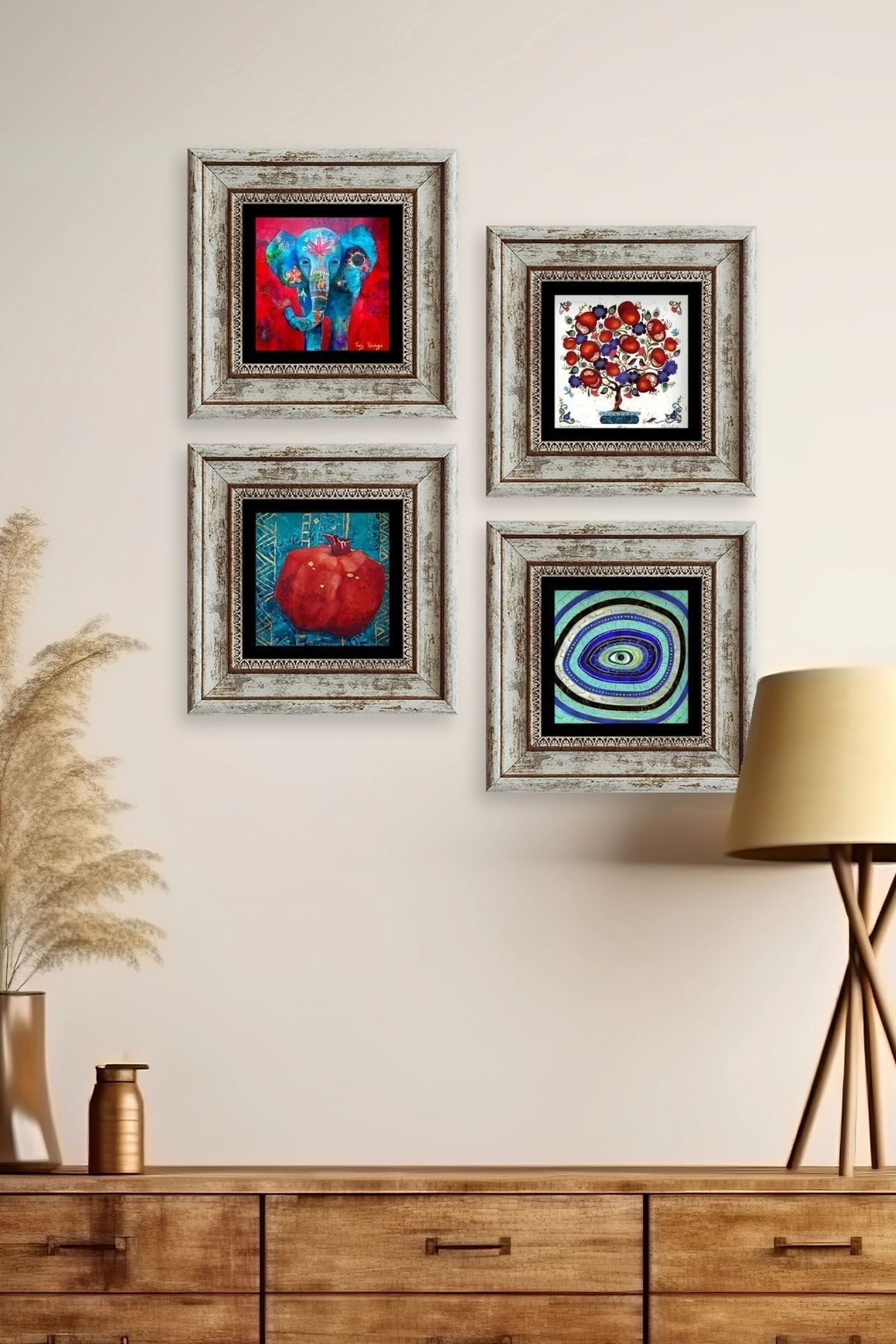 Ürün hakkında: Her Tablonun Ölçüleri: 20 cm x 20 cm veya 30 cm x 30 dir. ; Kalınlık :2,5 cm'dir. ; Ürünün arka tarafında askı aparatı bulunmaktadır. ; Kullanılan çerçeveler yüksek kaliteli, eskitme görünümlü kompozit malzemeden üretilmiştir. ; Taşların yüzeyindeki baskı teknolojisi özel olup sağlığa hiçbir zararı yoktur. ; Kullanılan malzeme dağdan çıkan gerçek taş oldugu için yüzeyinde belli oranda gözenek bulunması ve renginin krem renginin tonlarını barındırması normaldir kimyasal malzeme teması Yüzey deformasyona maruz kalabilir. ; Nemli bezle silinerek temizlenebilir. ; Isıya, suya ve neme dayanıklıdır. ; Kutu içeriği: Orijinal kutu içerisinde 4 adet çerçeveli taş duvar dekoru. ; 3 adet çerçeveli duvar dekoru ağırlığı: 1000 gr çerçeve askısı ile duvara montajı yapılabilir.;