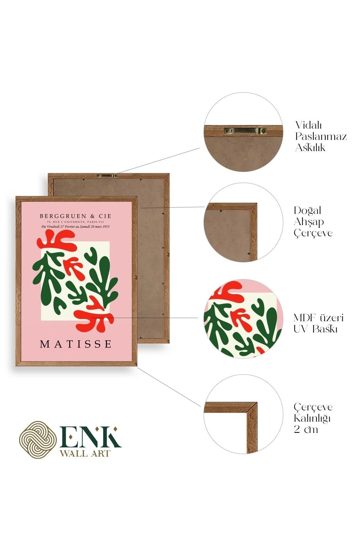 Tablolarımız gerçek ahşap çerçevelidir, çerçeve görünümlü değildir. ; ENK Wall Art Olarak Ahşap Çerçeveli Tablolar Üretiyoruz. ; Tablolarımız tek parça, 3 Parça, 5 Parça ve daha çok kategoride tasarımcılarımız tarafından ev ve ofisleriniz duvarları süslemek için tasarlanmaktadır. ; Ahşap Çerçeveli Duvar Tabloları ile yaşam alanlarınıza yepyeni bir görünüm kazandırın. ; Yıllarca dayanacağından emin olduğumuz sağlam çerçevelere sahip yüksek kaliteli ahşaptan üretilmiştir. ; İster bir köşeyi süslemek isteyin, ister evinizi yenilemek , bu ahşap tablolar herhangi bir yaşam alanına stil ve işlev getirecektir. ; Duvara kolay bir şekilde monte edilir. ; Uzun ömürlü kullanım için sağlam ahşap çerçeveden yapılmış, dayanıklı ve güçlü. ; Duvara monte edilebilir tasarımı, yaşam alanlarında veya yatak odalarında duvara kolayca asılmasını sağlar. ; Pürüzsüz üst yüzeyi temiz kalmayı kolaylaştırır. ; Herhangi bir stile uyacak şekilde çeşitli renklerde gelir. ; Kolay yeniden düzenleme için hafif ve portatif. ; Küçük oturma odaları veya dar alanlar için mükemmel boyut. ; Eve taşınma hediyesi olarak idealdir. ; Herhangi bir evin dekorunu süslemek için harika bir yol. ; Herhangi bir modern veya çağdaş iç tasarıma mükemmel bir katkı. ; Tablo içi 3 mm mdf (ahşap) malzeme üzeri uv baskıdır. ; Renkler canlı ve solma yapmaz. ; Kırılma, bükülme ve çizilmeye karşı dayanıklıdır.;