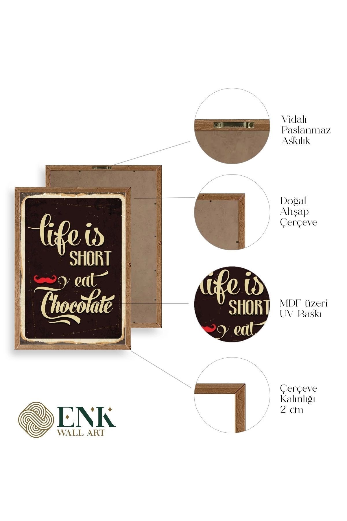 Tablolarımız gerçek ahşap çerçevelidir, çerçeve görünümlü değildir. ; ENK Wall Art Olarak Ahşap Çerçeveli Tablolar Üretiyoruz. ; Tablolarımız tek parça, 3 Parça, 5 Parça ve daha çok kategoride tasarımcılarımız tarafından ev ve ofisleriniz duvarları süslemek için tasarlanmaktadır. ; Ahşap Çerçeveli Duvar Tabloları ile yaşam alanlarınıza yepyeni bir görünüm kazandırın. ; Yıllarca dayanacağından emin olduğumuz sağlam çerçevelere sahip yüksek kaliteli ahşaptan üretilmiştir. ; İster bir köşeyi süslemek isteyin, ister evinizi yenilemek , bu ahşap tablolar herhangi bir yaşam alanına stil ve işlev getirecektir. ; Duvara kolay bir şekilde monte edilir. ; Uzun ömürlü kullanım için sağlam ahşap çerçeveden yapılmış, dayanıklı ve güçlü. ; Duvara monte edilebilir tasarımı, yaşam alanlarında veya yatak odalarında duvara kolayca asılmasını sağlar. ; Pürüzsüz üst yüzeyi temiz kalmayı kolaylaştırır. ; Herhangi bir stile uyacak şekilde çeşitli renklerde gelir. ; Kolay yeniden düzenleme için hafif ve portatif. ; Küçük oturma odaları veya dar alanlar için mükemmel boyut. ; Eve taşınma hediyesi olarak idealdir. ; Herhangi bir evin dekorunu süslemek için harika bir yol. ; Herhangi bir modern veya çağdaş iç tasarıma mükemmel bir katkı. ; Tablo içi 3 mm mdf (ahşap) malzeme üzeri uv baskıdır. ; Renkler canlı ve solma yapmaz. ; Kırılma, bükülme ve çizilmeye karşı dayanıklıdır.;