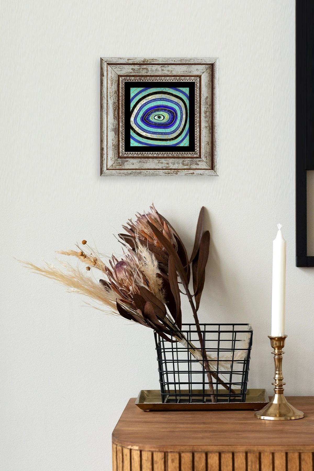 Ürün hakkında: Ölçüleri: 20 cm x 20 cm ve 30 cm x 30 dir. ; Kalınlık :2,5 cm'dir. ; Ürünün arka tarafında askı aparatı bulunmaktadır. ; Kullanılan çerçeveler yüksek kaliteli, eskitme görünümlü kompozit malzemeden üretilmiştir. ; Taşların yüzeyindeki baskı teknolojisi özel olup sağlığa hiçbir zararı yoktur. ; Kullanılan malzeme dağdan çıkan gerçek taş oldugu için yüzeyinde belli oranda gözenek bulunması ve renginin krem renginin tonlarını barındırması normaldir kimyasal malzeme teması Yüzey deformasyona maruz kalabilir. ; Nemli bezle silinerek temizlenebilir. ; Isıya, suya ve neme dayanıklıdır. ; Kutu içeriği: Orijinal kutu içerisinde 1 adet çerçeveli taş duvar dekoru. ; 1 adet çerçeveli duvar dekoru ağırlığı: 250 gr çerçeve askısı ile duvara montajı yapılabilir.;