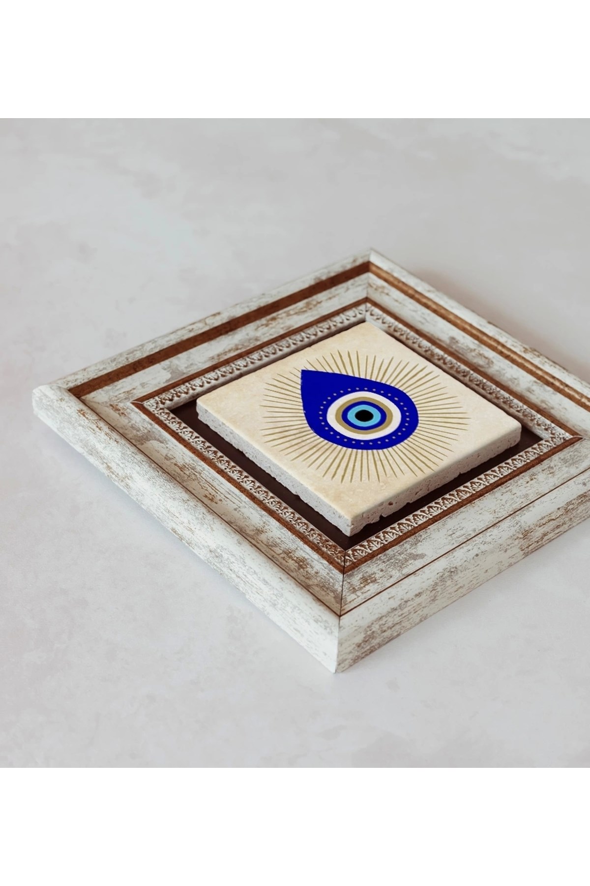 Ürün hakkında: Ölçüleri: 20 cm x 20 cm'dir. ; Kalınlık :2,5 cm'dir. ; Ürünün arka tarafında askı aparatı bulunmaktadır. ; Kullanılan çerçeveler yüksek kaliteli, eskitme görünümlü kompozit malzemeden üretilmiştir. ; Taşların yüzeyindeki baskı teknolojisi özel olup sağlığa hiçbir zararı yoktur. ; Kullanılan malzeme dağdan çıkan gerçek taş oldugu için yüzeyinde belli oranda gözenek bulunması ve renginin krem renginin tonlarını barındırması normaldir kimyasal malzeme teması Yüzey deformasyona maruz kalabilir. ; Nemli bezle silinerek temizlenebilir. ; Isıya, suya ve neme dayanıklıdır. ; Kutu içeriği: Orijinal kutu içerisinde 1 adet çerçeveli taş duvar dekoru. ; 1 adet çerçeveli duvar dekoru ağırlığı: 250 gr çerçeve askısı ile duvara montajı yapılabilir.;