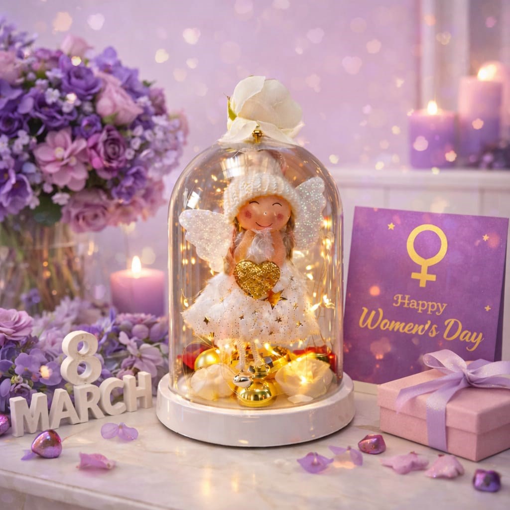 ✨ Ürün Açıklaması: Kadınların zarafetini, gücünü ve ışığını temsil eden Venüs Işıltısı Melek Fanus, özel olarak NF Trend Store tarafından sevgiyle tasarlanmıştır.