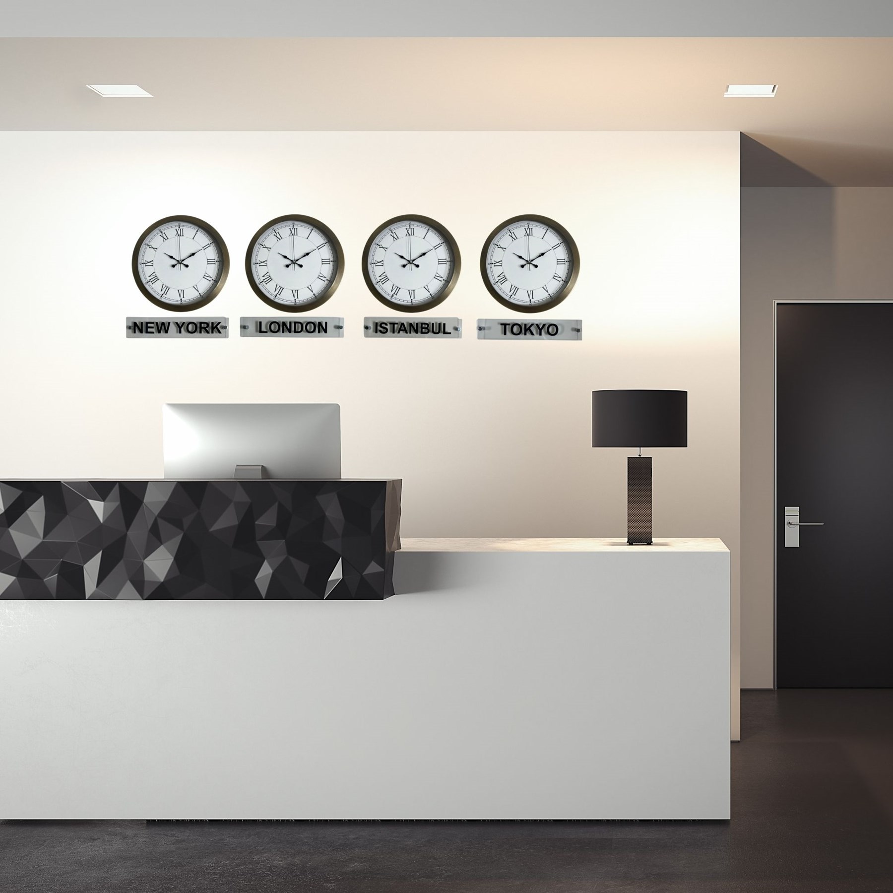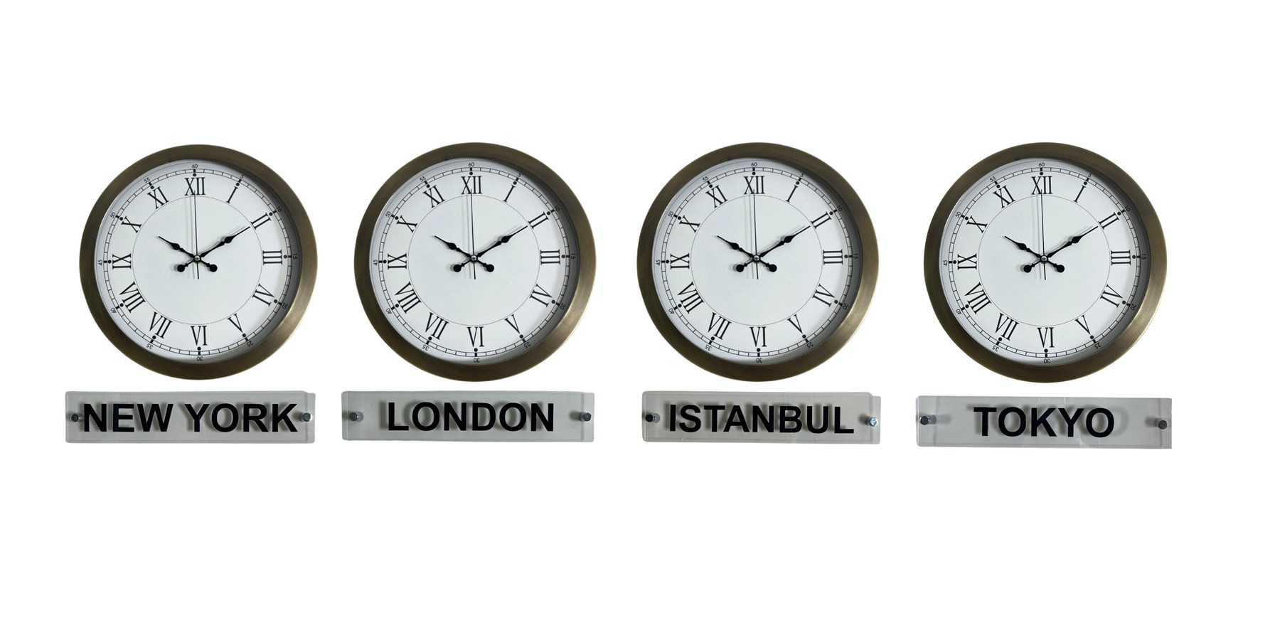 New York, London, İstanbul ve Tokyo şehirlerini aynı anda takip edebilmenizi sağlayan bu özel set; ofis, otel, resepsiyon ve konsept mekânlar için hem dekoratif hem de profesyonel bir çözümdür.