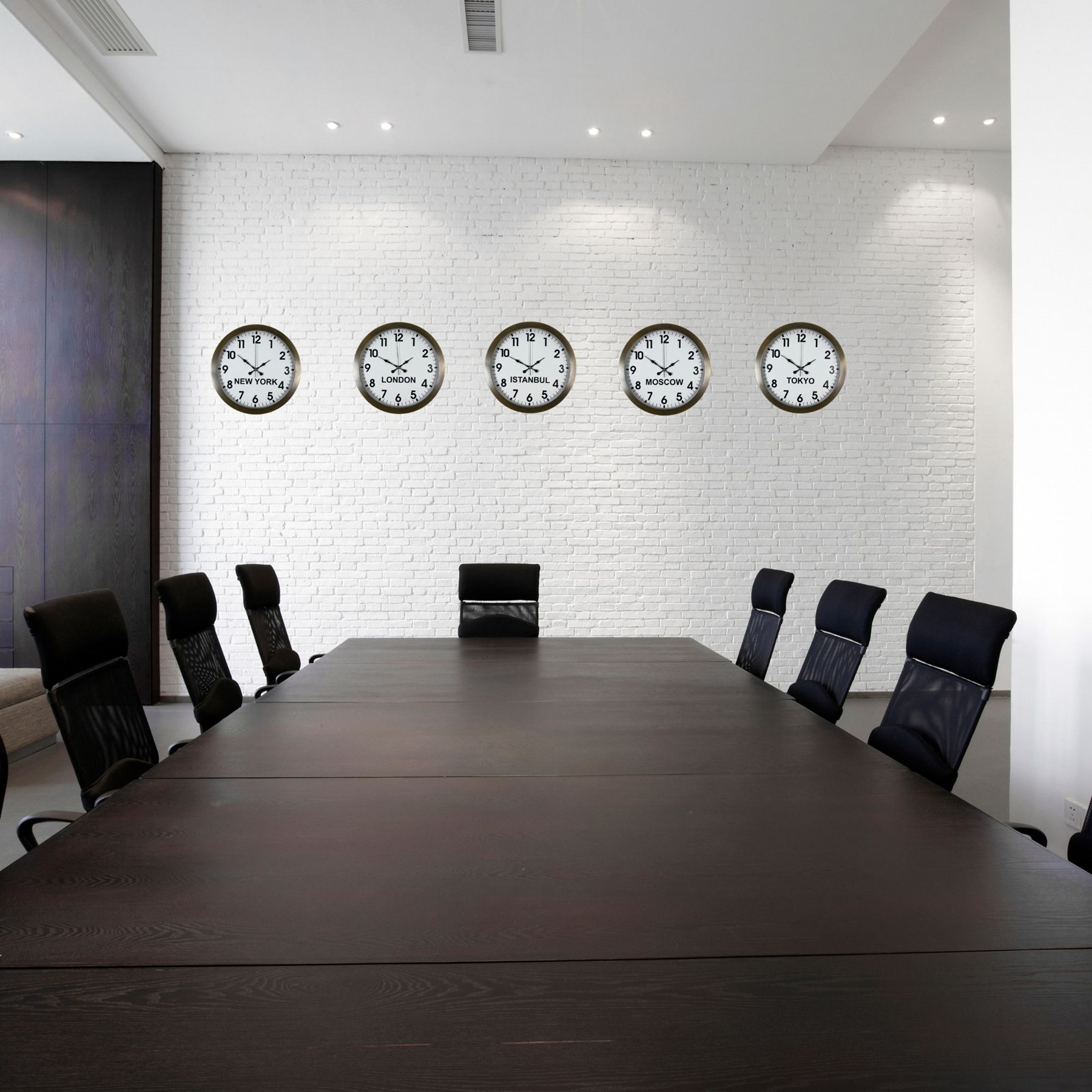 Set içerisinde yer alan New York, London, İstanbul, Moscow ve Tokyo saatleri ile dünyanın önemli merkezlerinin saatlerini aynı anda takip edebilir, özellikle uluslararası çalışan işletmeler için büyük kolaylık sağlayabilirsiniz. Bu özelliği sayesinde ürün; otel resepsiyonları, kurumsal ofisler, ajanslar ve lobi alanları için ideal bir çözümdür.