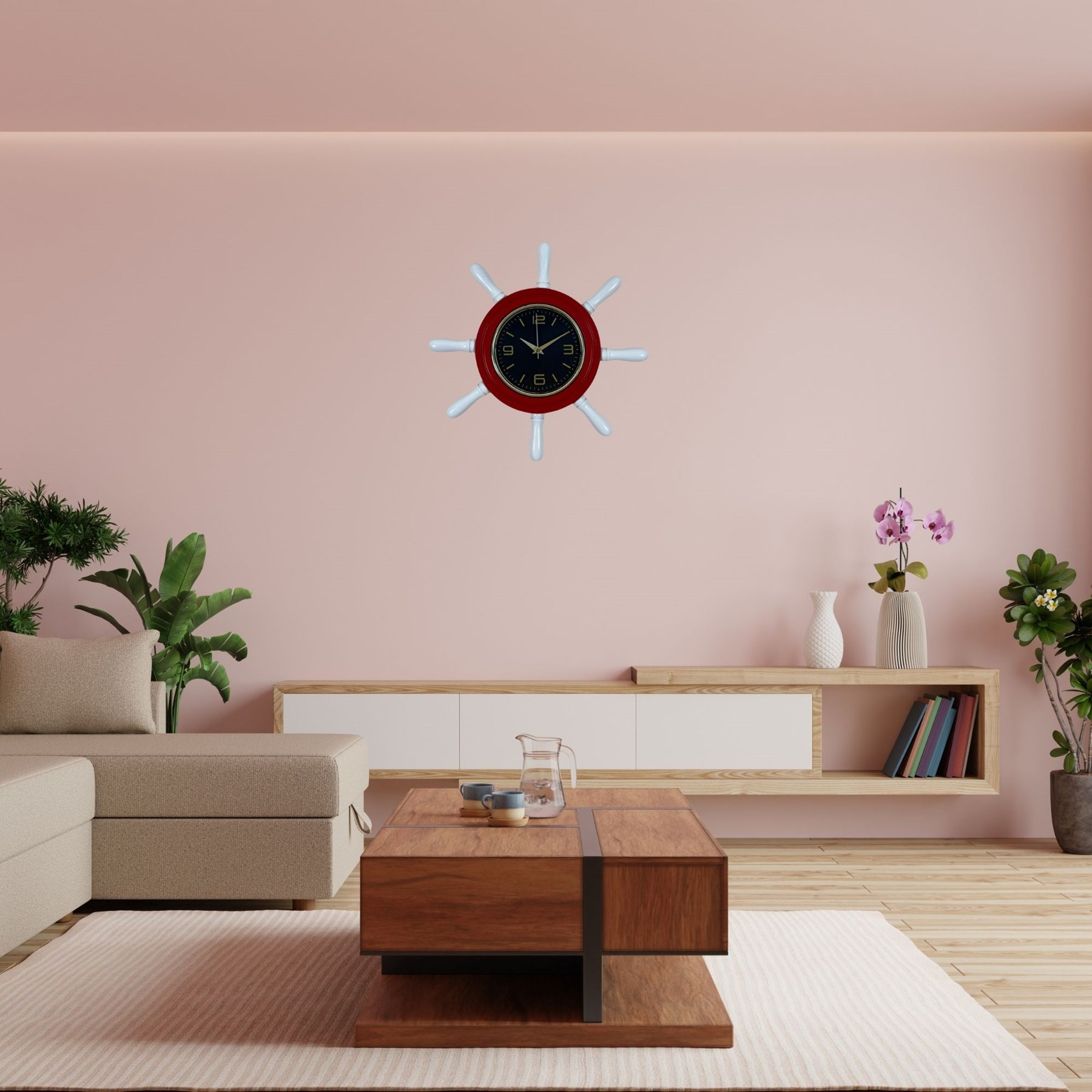 Kırmızı Modern Kavelalı Dümen Duvar Saati