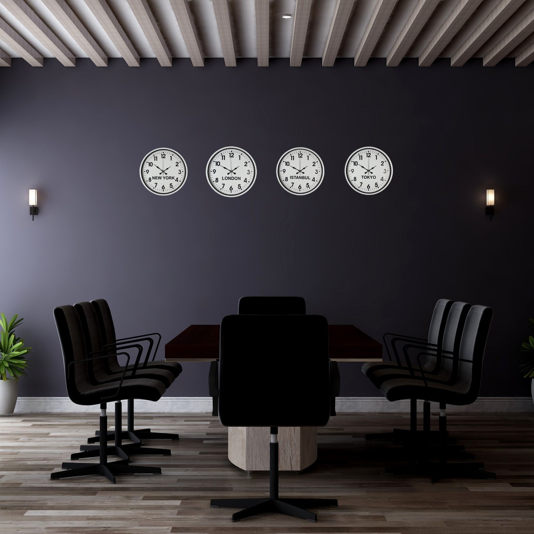 Beyaz 4’lü Dünya Saatleri Seti 36 cm – Otel & Ofis Tipi