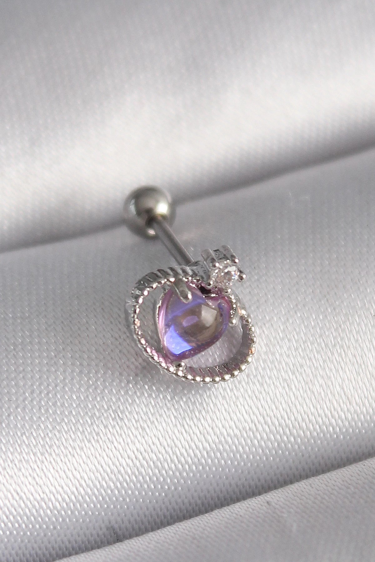 Mey İthalat® 316L Çelik Gümüş Renk Mor Mineli Kalp Zirkon Taş Detay Tragus Piercing