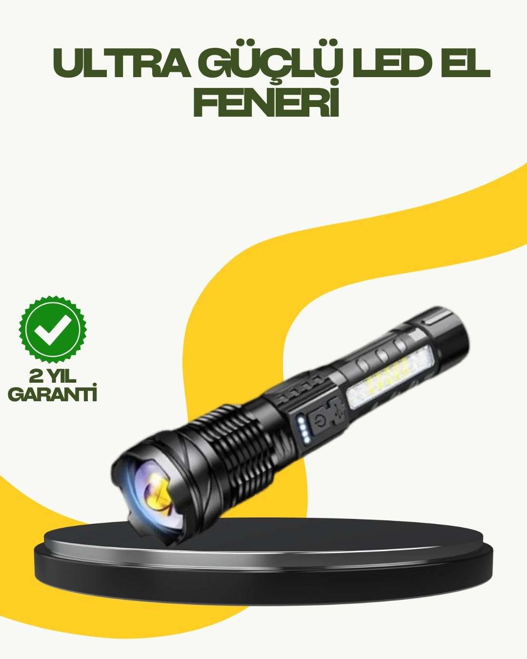 Şarjlı El Feneri Yüksek Işık Gücü Uzun Menzil