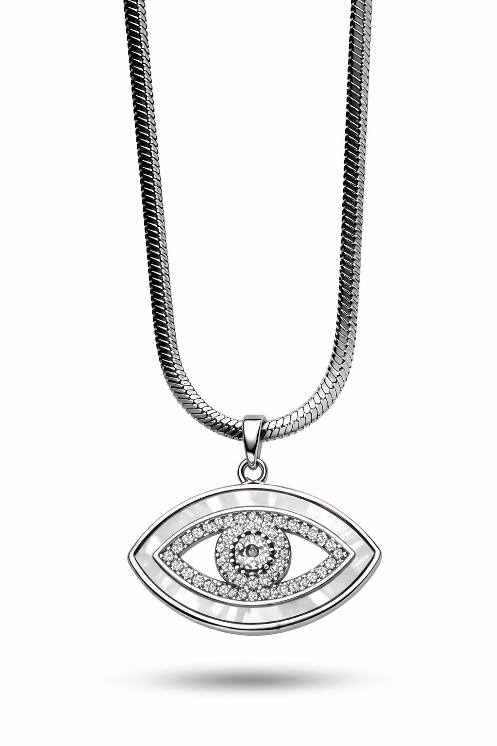 Paslanmaz Çelik Nazar Göz Kolye MODEL 4 – Zirkon Taşlı Parlak Tasarım | Kararmaz Kadın Kolyesi Şıklığı ve anlamı bir araya getiren paslanmaz çelik nazar göz kolye, modern ve zarif tasarımıyla günlük kullanıma uygun özel bir aksesuardır.