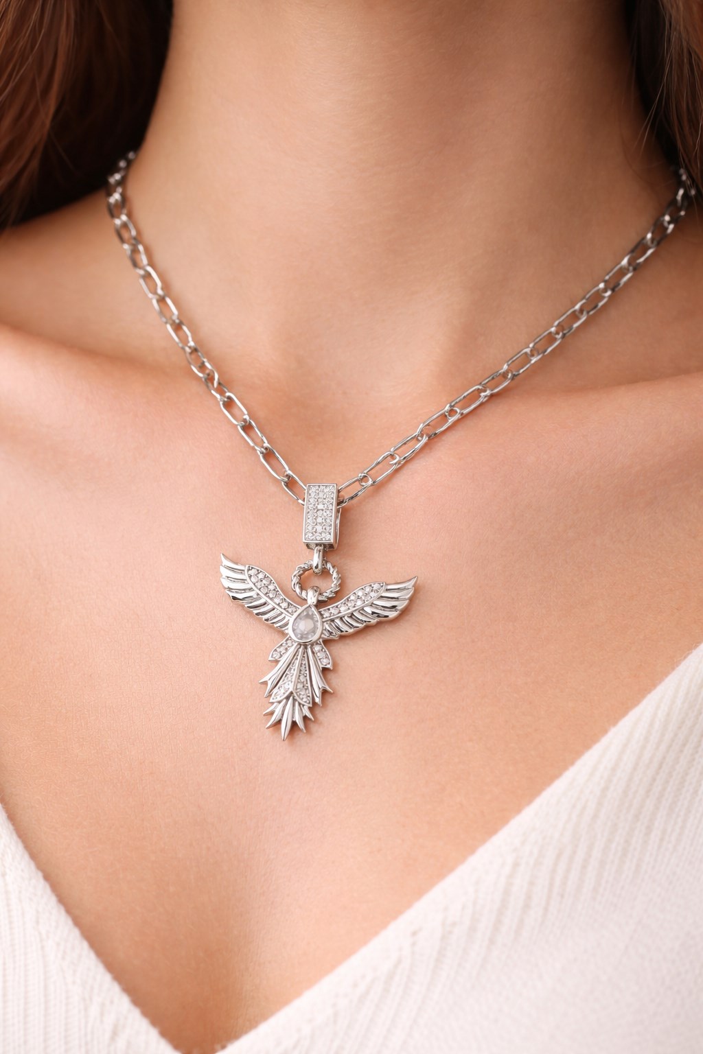 Nazar göz formu, merkezde yer alan ışıltılı zirkon taş detaylarıyla birlikte kolyeye dikkat çekici ve estetik bir görünüm kazandırır. Paslanmaz çelik materyal sayesinde kararma, solma ve renk atması yapmaz. Uzun süreli kullanıma uygun yapısıyla hem günlük kombinlerde hem de özel günlerde rahatlıkla tercih edilebilir. Minimal ve zamansız tasarımı sayesinde tek başına kullanıldığında şık, diğer kolyelerle kombinlendiğinde ise trend bir görünüm oluşturur. ? Öne Çıkan Özellikler
