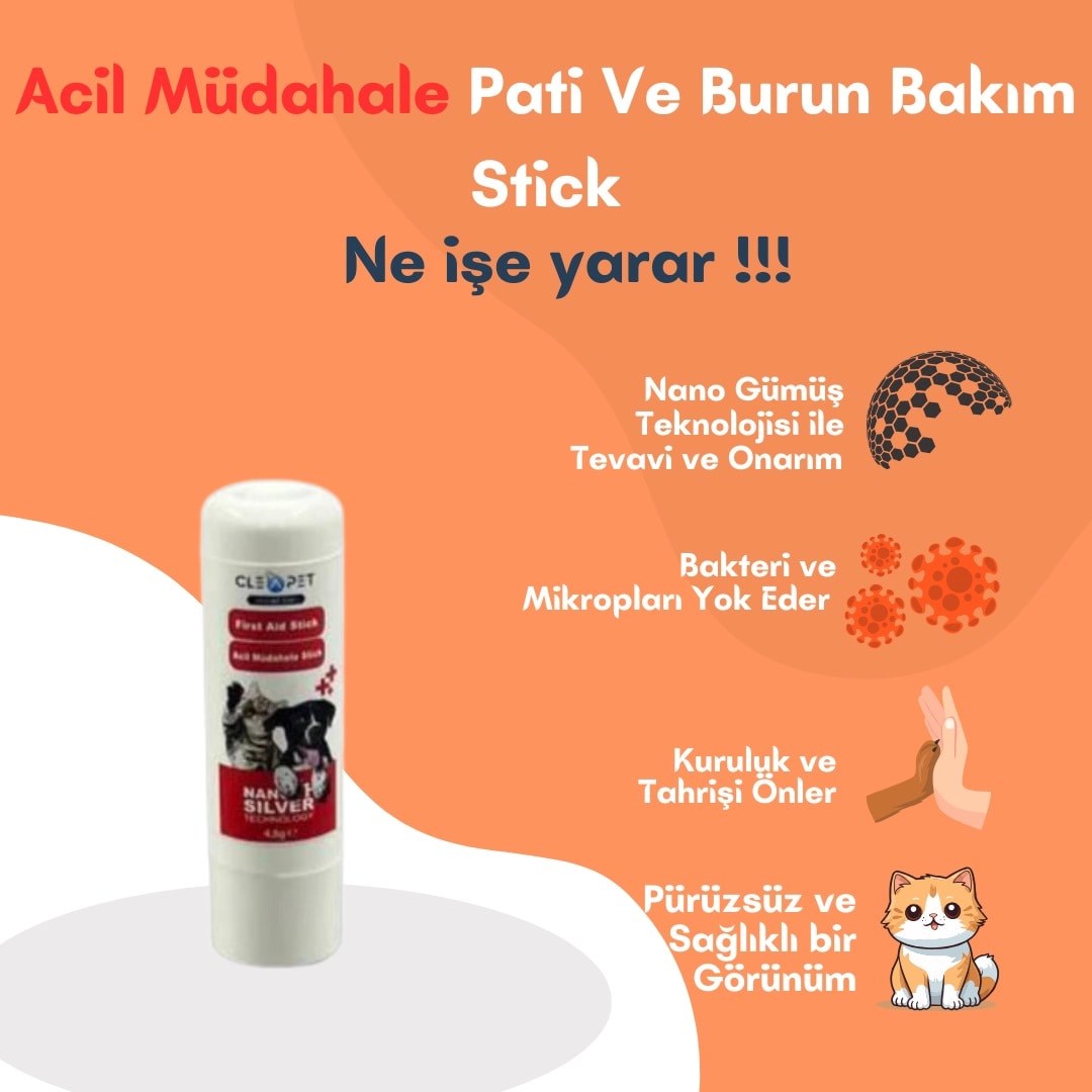Nano gümüş teknolojisi ile formüle edilen bu acil müdahale stick, köpeklerin pati ve burun bölgelerinin hijyenik bakımını sağlamak amacıyla geliştirilmiştir. Antibakteriyel özellikleri sayesinde, uygulandığı bölgede etkili bir koruma katmanı oluşturarak bakteri ve mikropları yok eder. İçeriğindeki nano boyutta gümüş, derinin yedi kat altına inerek derinlemesine temizlik ve onarım sağlar.