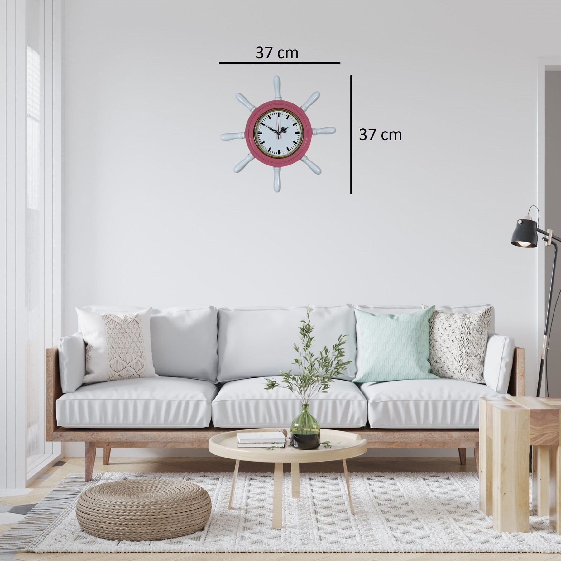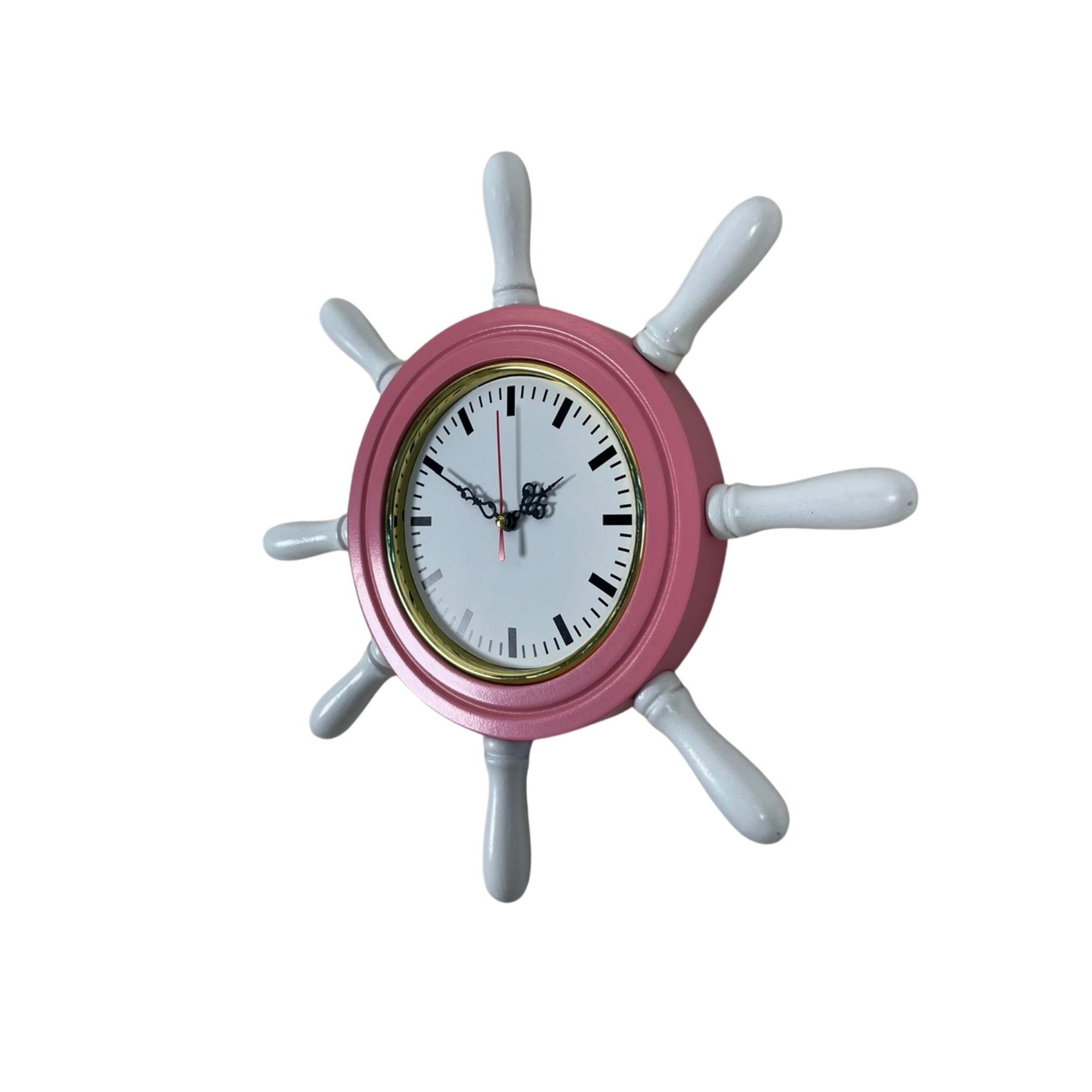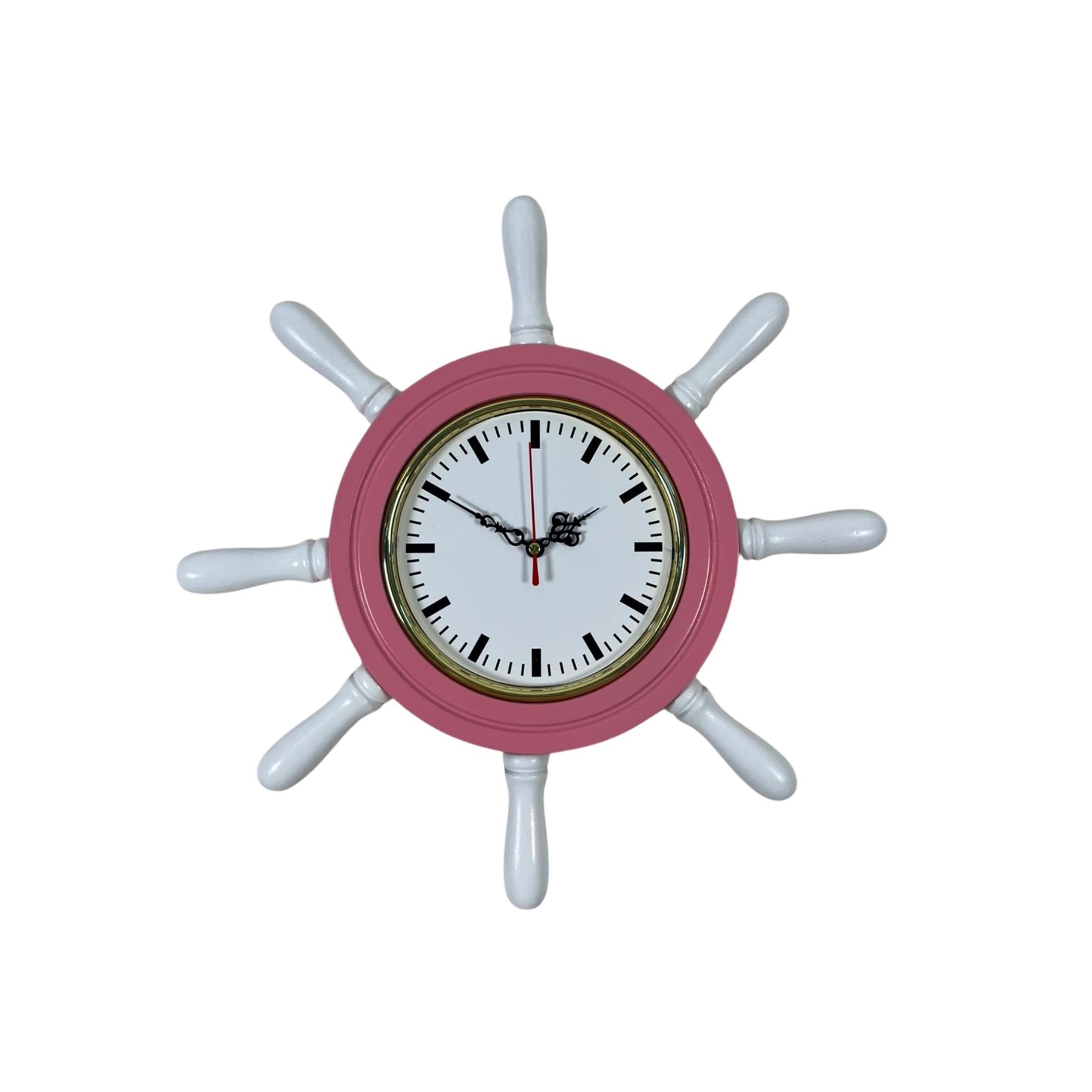 Denizcilik temalı dekorasyonlardan ilham alınarak tasarlanan 37 cm Pembe Dümen Duvar Saati, bulunduğu ortama canlı ve dekoratif bir görünüm kazandırır. Gemi dümeni formundaki özgün tasarımı sayesinde özellikle çocuk odası, genç odası, salon ve yazlık ev dekorasyonları için dikkat çekici bir duvar saatidir.