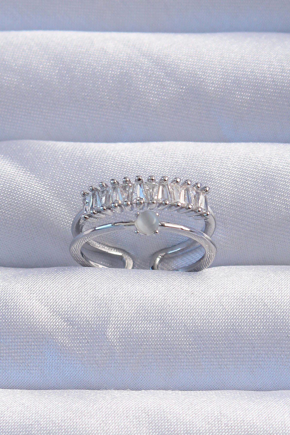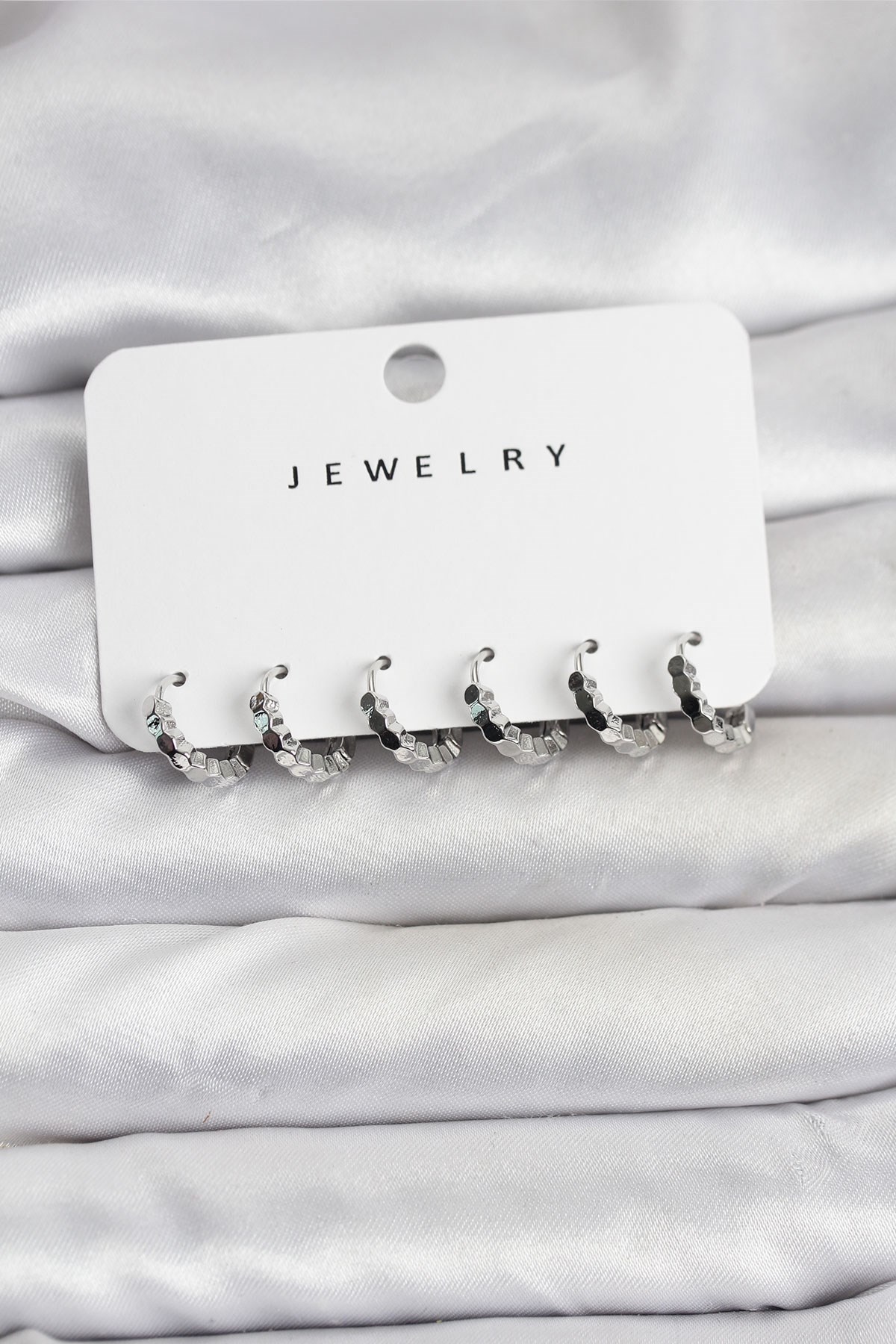 Pirinç Zirkon Taş Ve Dikdörtgen Figürlü Gümüş Renk 3'lü Çift Kadın Küpe Set