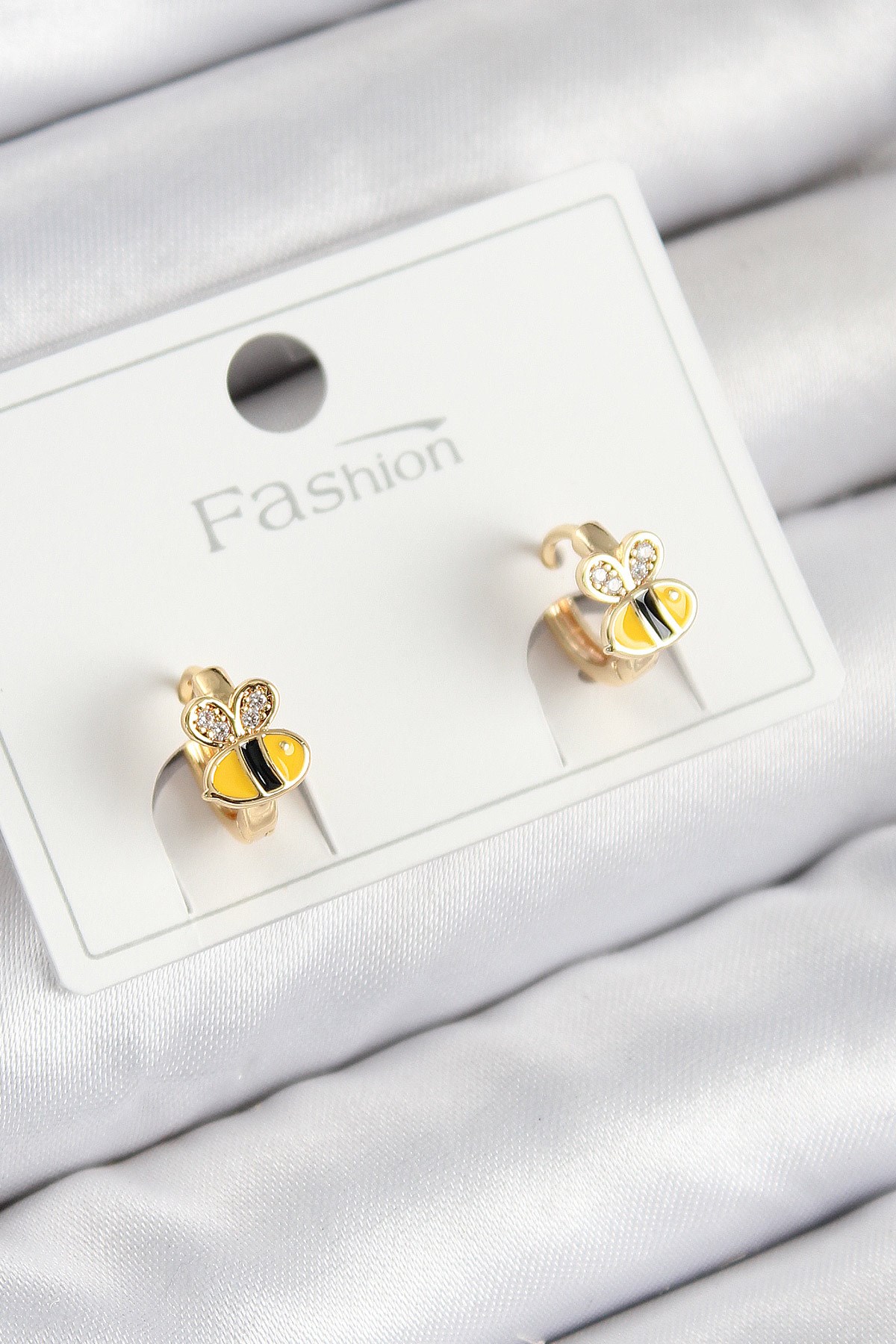 Pirinç Zirkon Taşlı Arı Model Gold Renk Çocuk Küpe