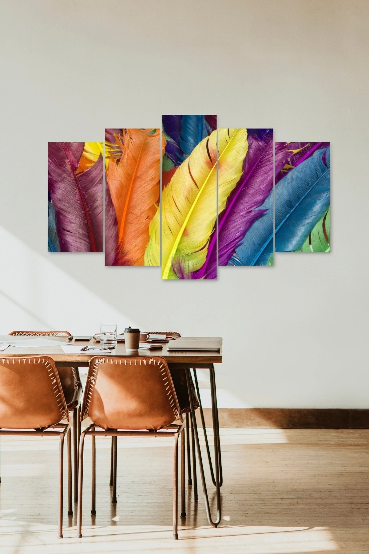 Modern tasarımıyla evinizin dekorasyonuna şıklık katan 5 parçalı MDF tablo, mekanınıza çağdaş bir hava katıyor; Dayanıklı ahşap malzemesi sayesinde uzun ömürlü kullanım sunar ve estetik görünümüyle dikkat çeker; Her bir parçanın ayrı ayrı tasarlanmış olması, farklı renk ve desenlerle zenginleştirilmiş bir görsel deneyim sağlar;
