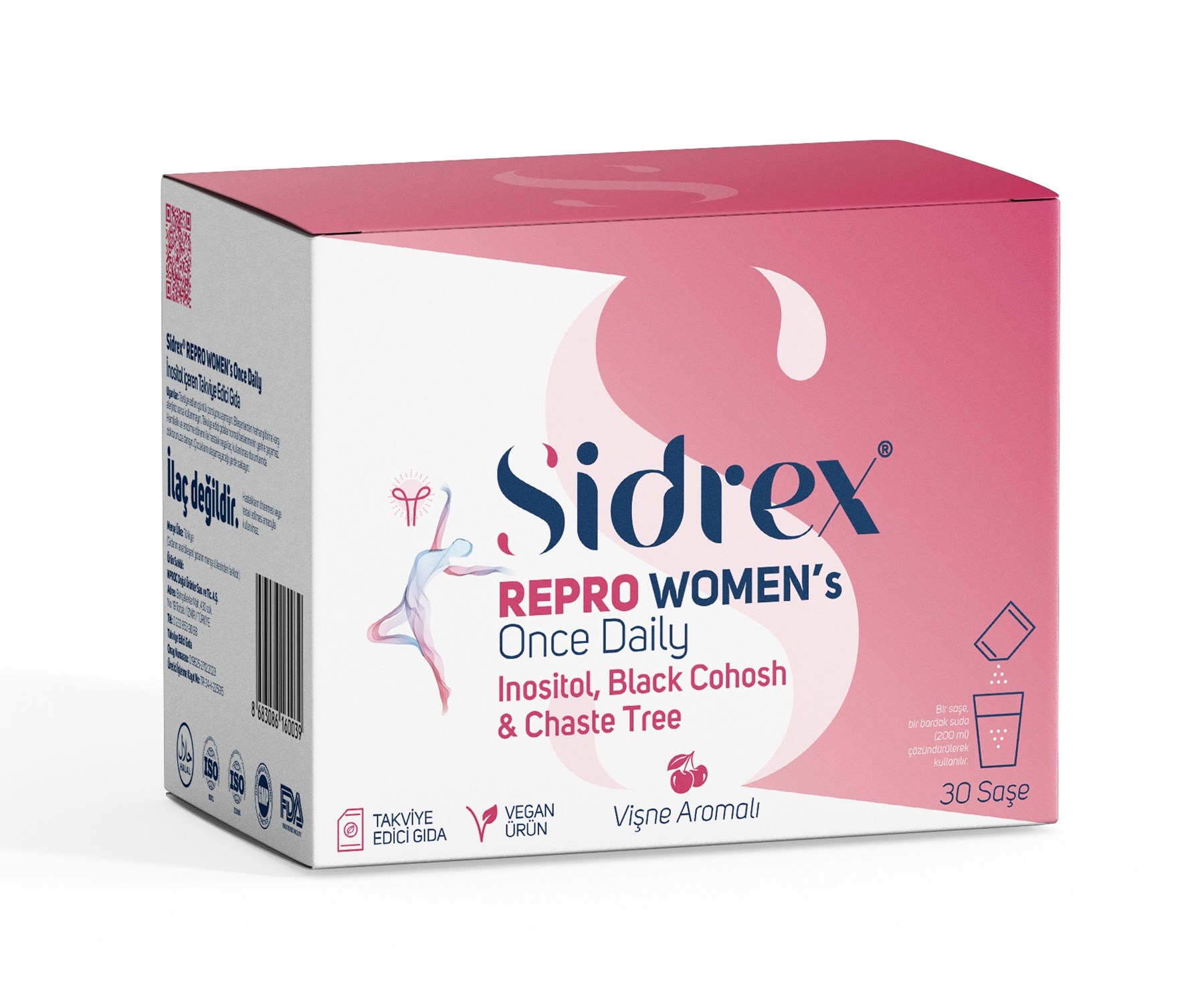 Sidrex® Repro Women’s Once Daily, kadınların ihtiyaçlarına yönelik özel olarak formüle edilen, Inositol başta olmak üzere 14 bileşenli zengin içeriğe sahip özel bir gıda takviyesidir. Repro Women’s Once Daily, kohoş ve hayıt bitkisel ekstreleriyle güçlendirilmiştir.
