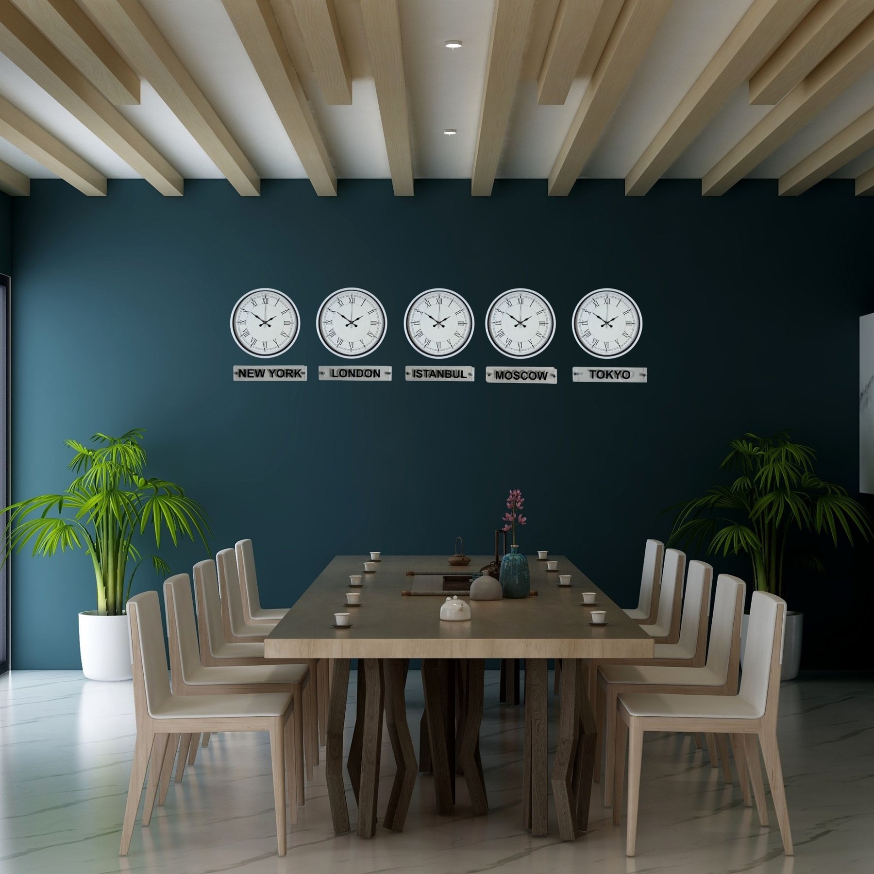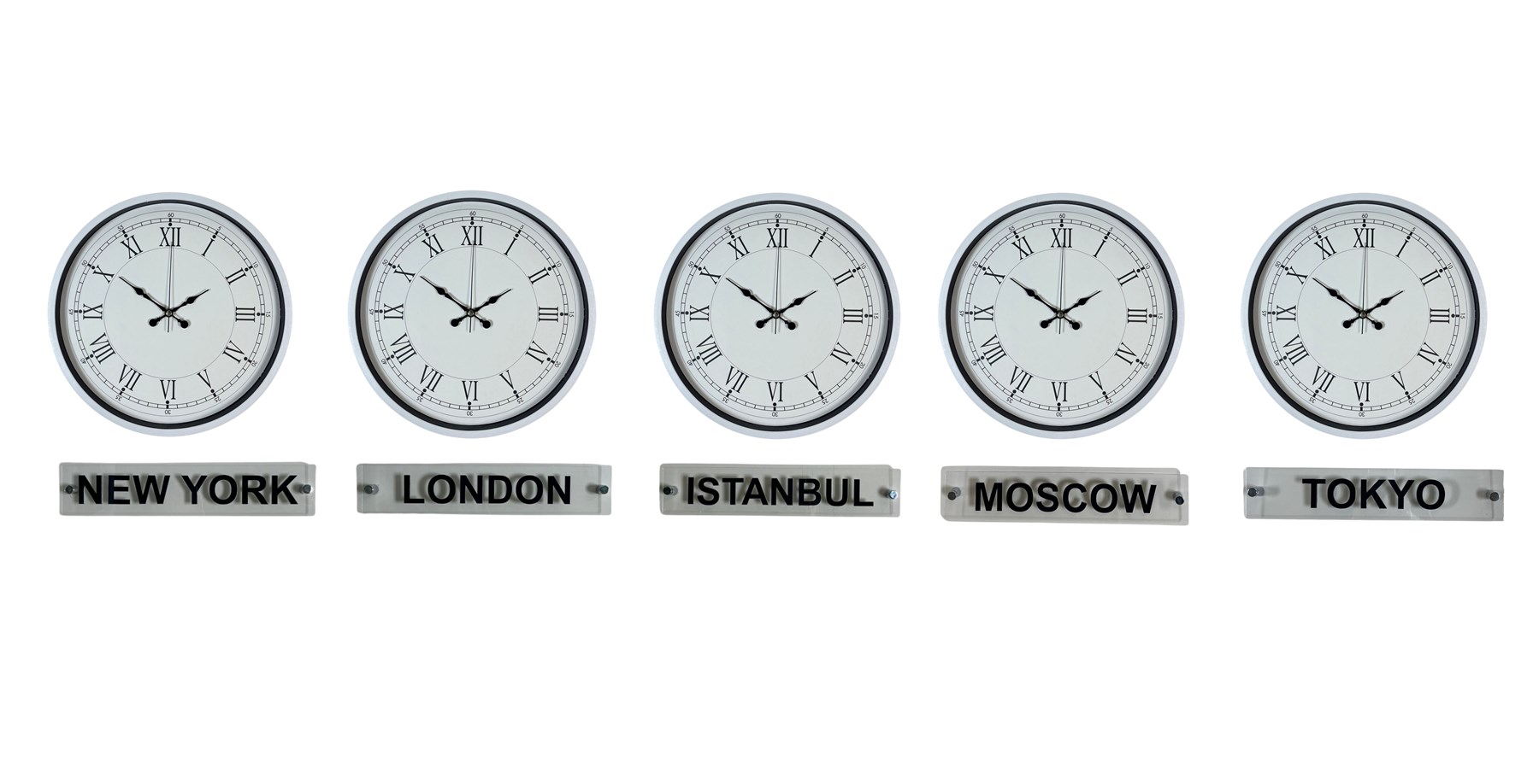Sade ve modern tasarımıyla öne çıkan 36 cm 5’li tabelalı beyaz dünya saatleri, bulunduğu ortama şıklık ve düzen katar. Farklı şehirlerin saatlerini aynı anda takip etme imkânı sunan bu özel set, özellikle ofisler, resepsiyonlar ve kurumsal alanlar için ideal bir çözümdür.