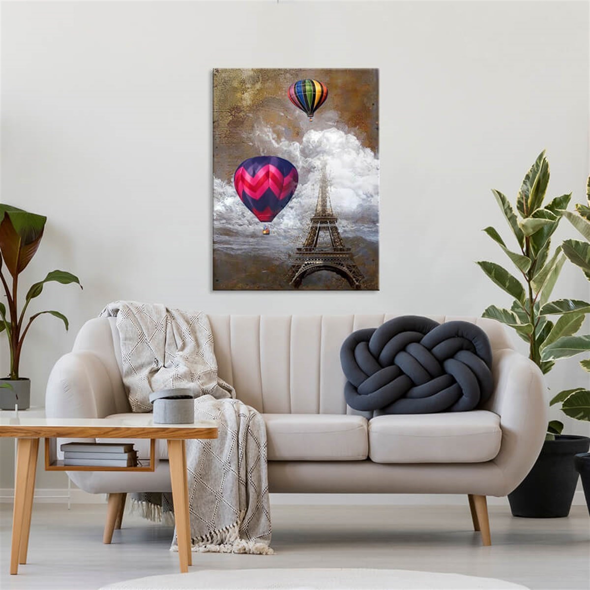 Eyfel'de Uçan Balonlar - Yağlı Boya Dokulu Tablo 75X100 cm Gold
