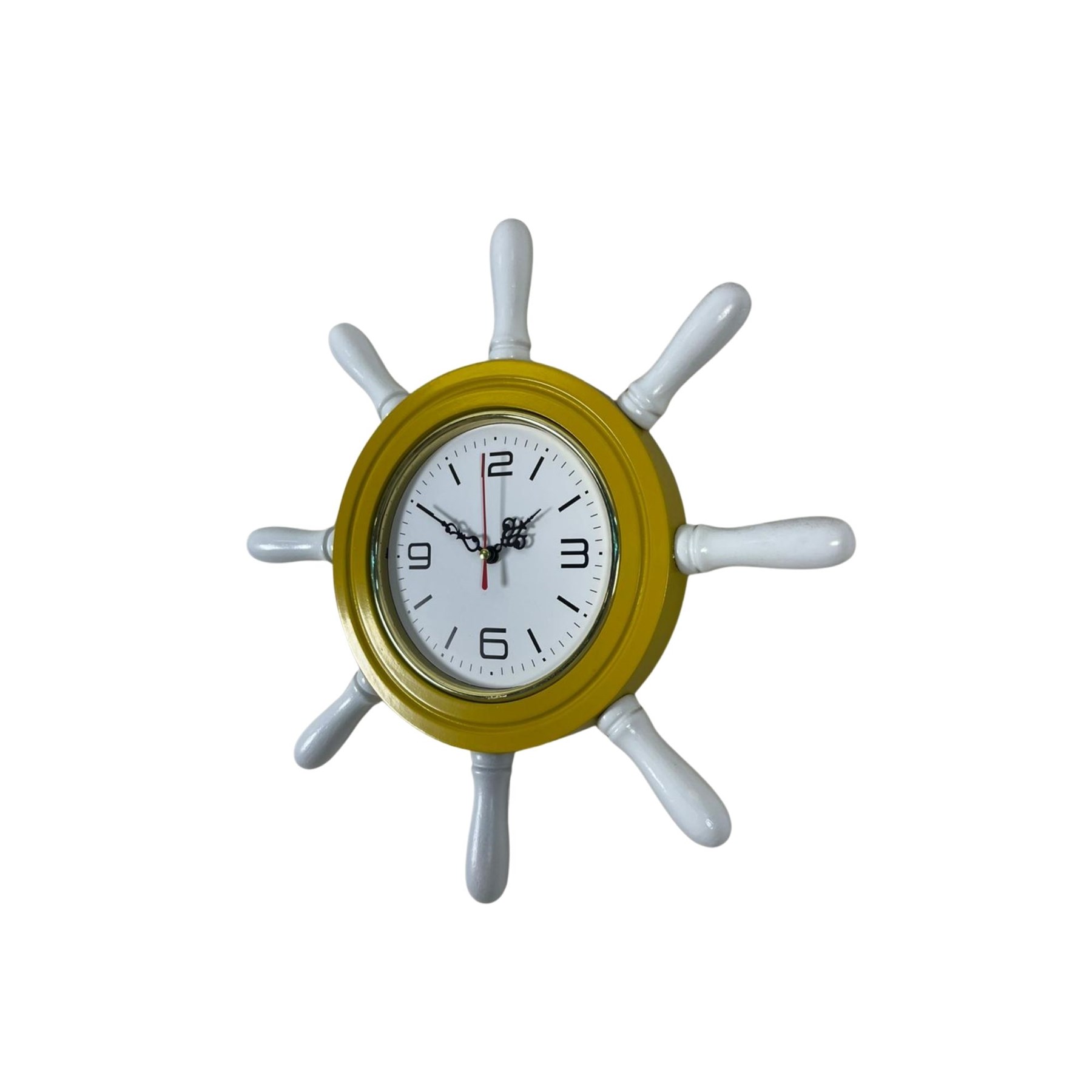 Sarı gövdesi ve beyaz dümen kolları ile dekorasyona sıcak ve dinamik bir görünüm kazandırır. Sade ve net rakamlı kadranı sayesinde saat kolay okunur ve dekoratif tasarımıyla bulunduğu ortama farklı bir karakter katar.
