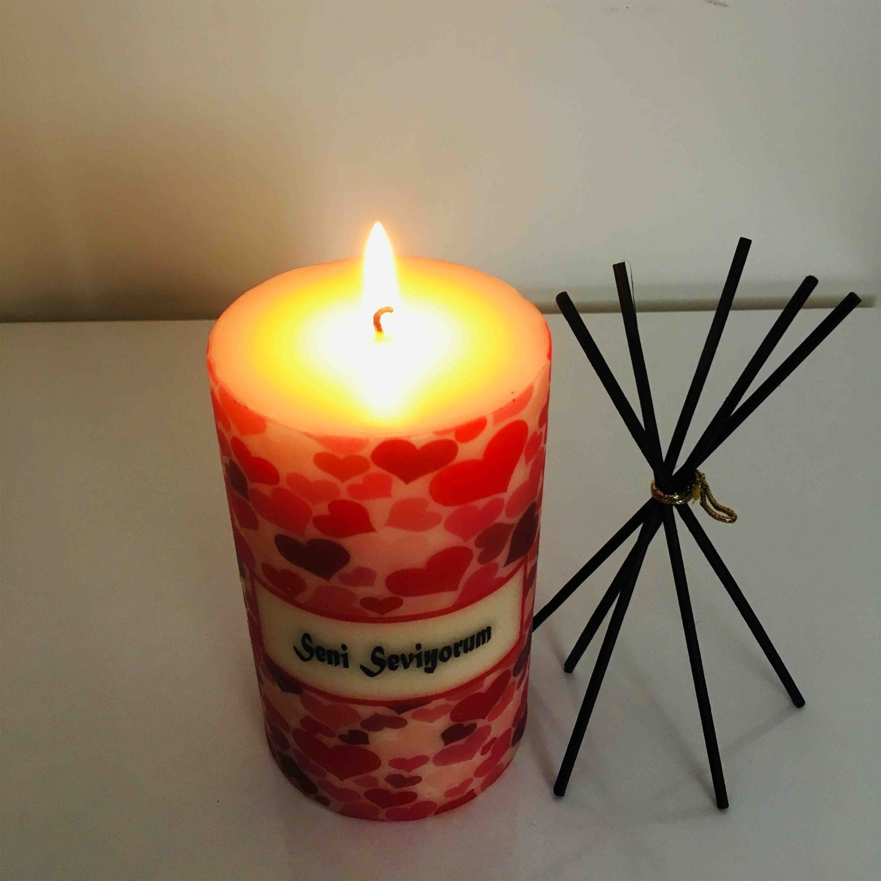 Sevgililer Gününe Özel Seni Seviyorum Temalı Kalpli Desen Baskılı Mum 2
