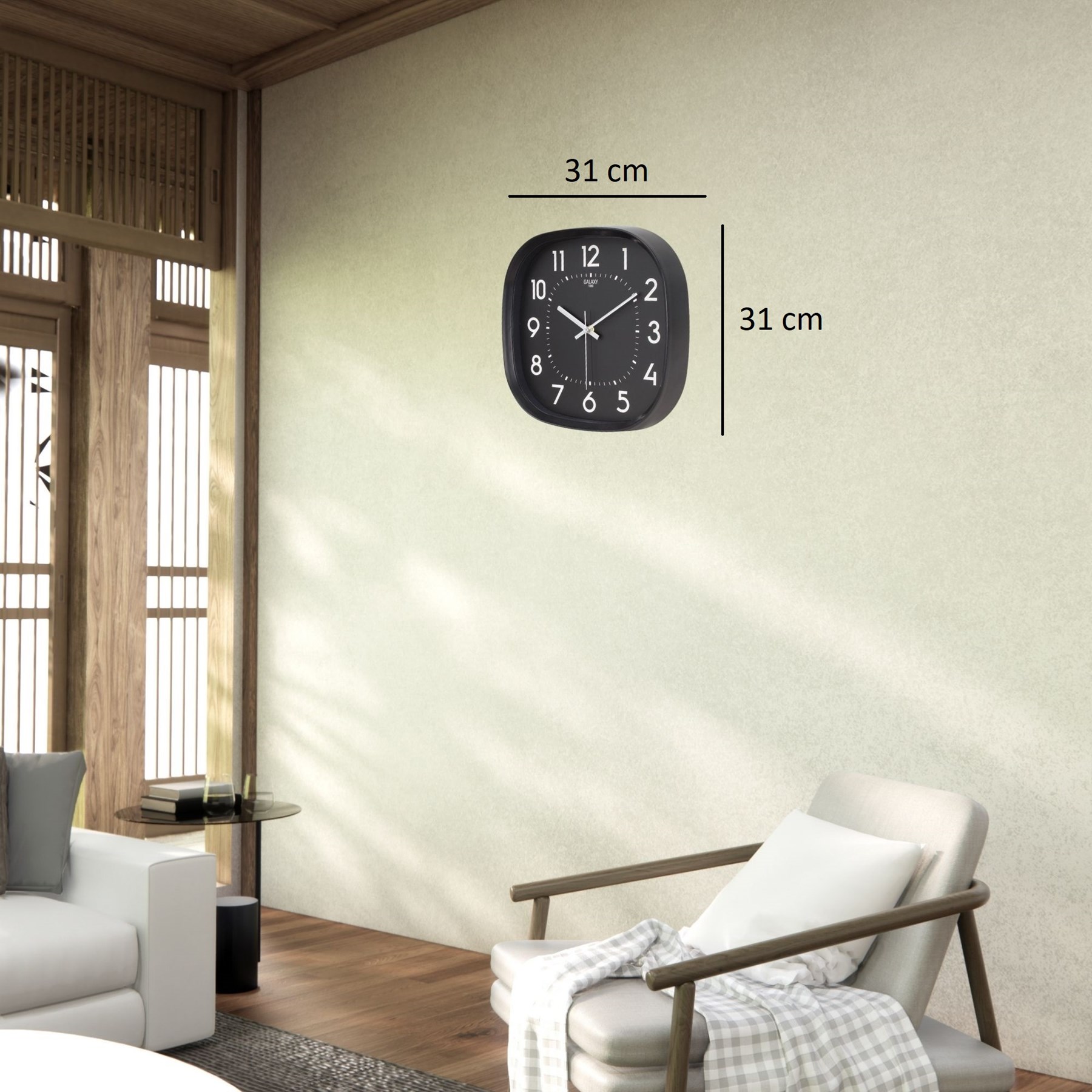Modern ve sade tasarımıyla yaşam alanlarınıza şıklık katan 31 cm Siyah Duvar Saati, hem ev hem de ofis dekorasyonları için ideal bir tamamlayıcıdır. Minimalist siyah kasa ve beyaz rakamların oluşturduğu güçlü kontrast sayesinde saat uzaktan bile kolayca okunabilir.
