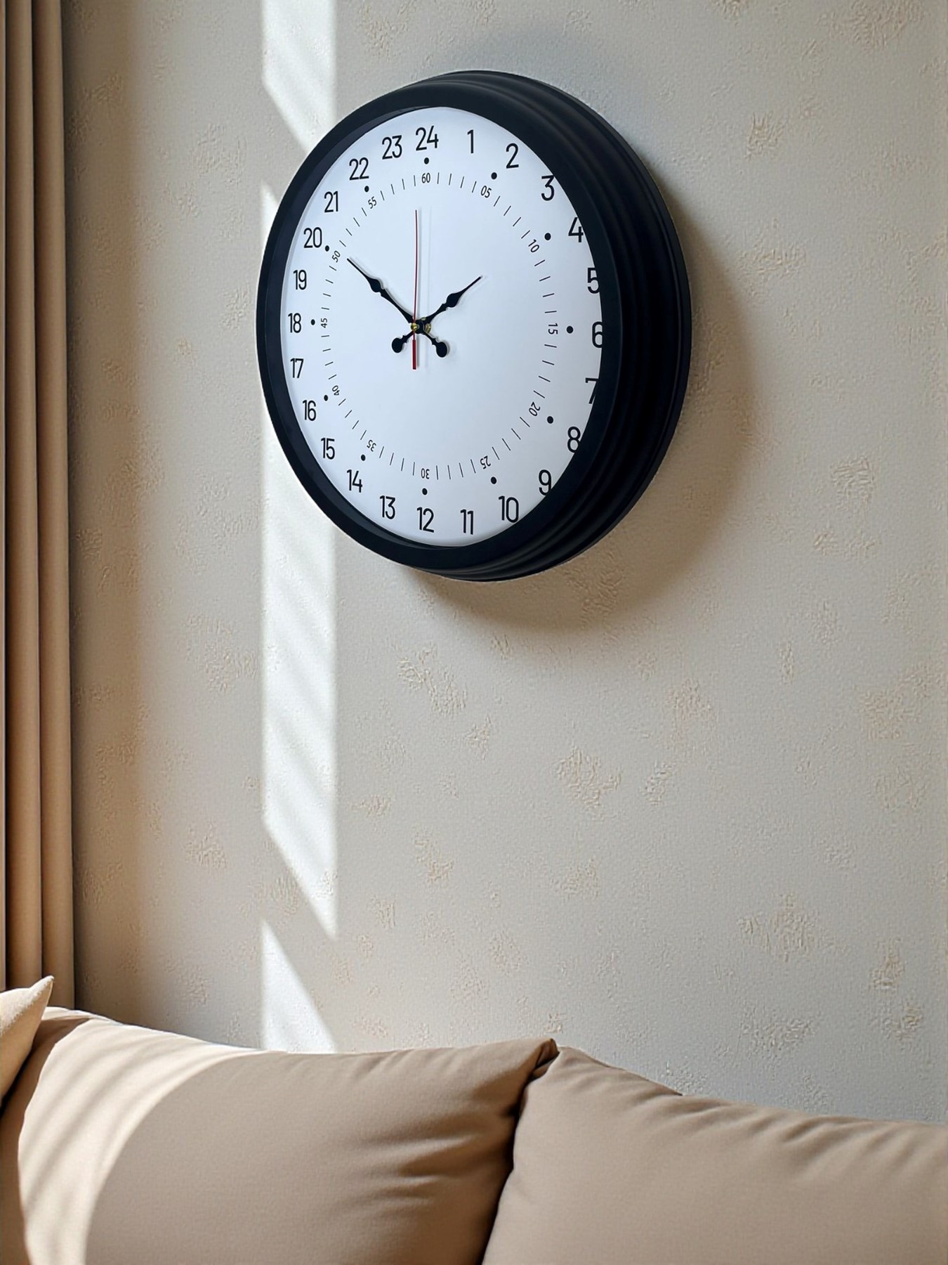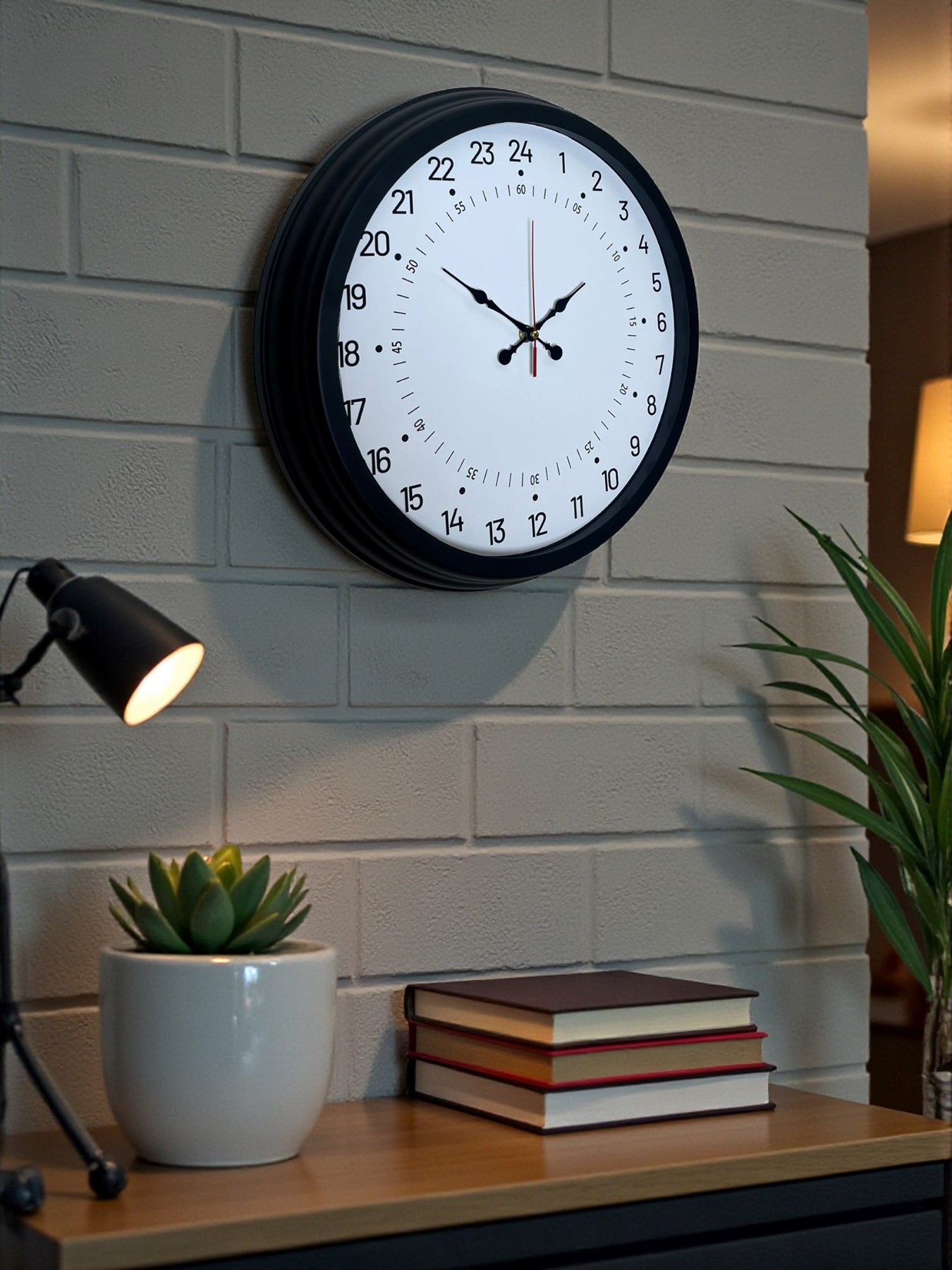 Beyaz kadran üzerine yerleştirilmiş 24 saat rakamları, zamanı karıştırmadan okuma imkânı sağlar. Özellikle ofisler, fabrikalar, atölyeler, okullar, hastaneler, güvenlik alanları ve çalışma ortamları için idealdir. Aynı zamanda modern ve sade tasarımıyla ev kullanımına da uygundur.