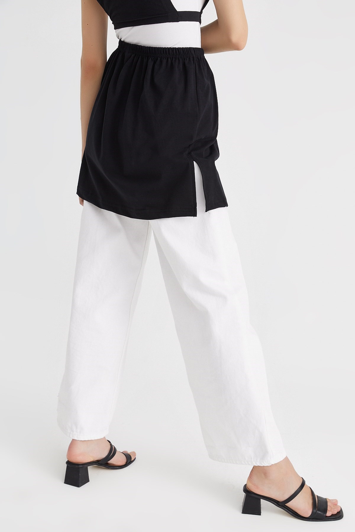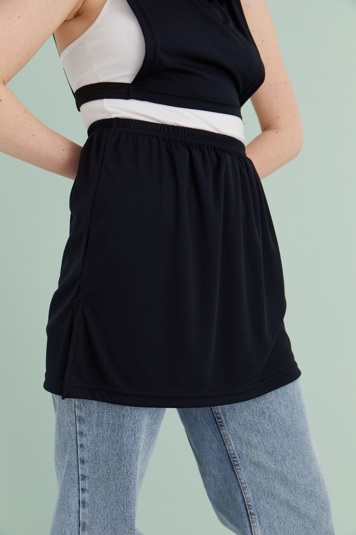 Mirach Textile ile özdeşleşmiş ürünlerinden olan siyah yırtmaçlı içlik eteği inceleyeceğiniz için teşekkür ederiz. Bu ürün, kaliteli %95 pamuk %5 likra poplin kumaştan üretilmiştir ve dört mevsim kullanımı için uygundur.