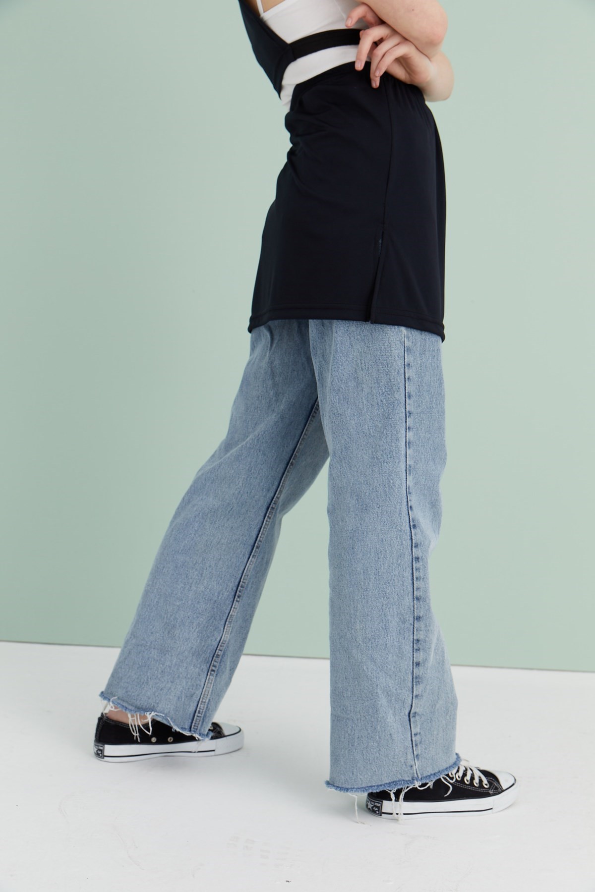 Siyah yırtmaçlı içlik, farklı yaş gruplarına ve tarzlara hitap eden çok yönlü bir parçadır. Kısa kazak, tişört veya sweatshirt gibi farklı tamamlayıcı parçalarla kombinlenerek tarzınızı kişiselleştirebilirsiniz. Detaylı stil önerilerimizi inceleyerek müşterilerinize çeşitli kombinasyon seçenekleri sunabilirsiniz.