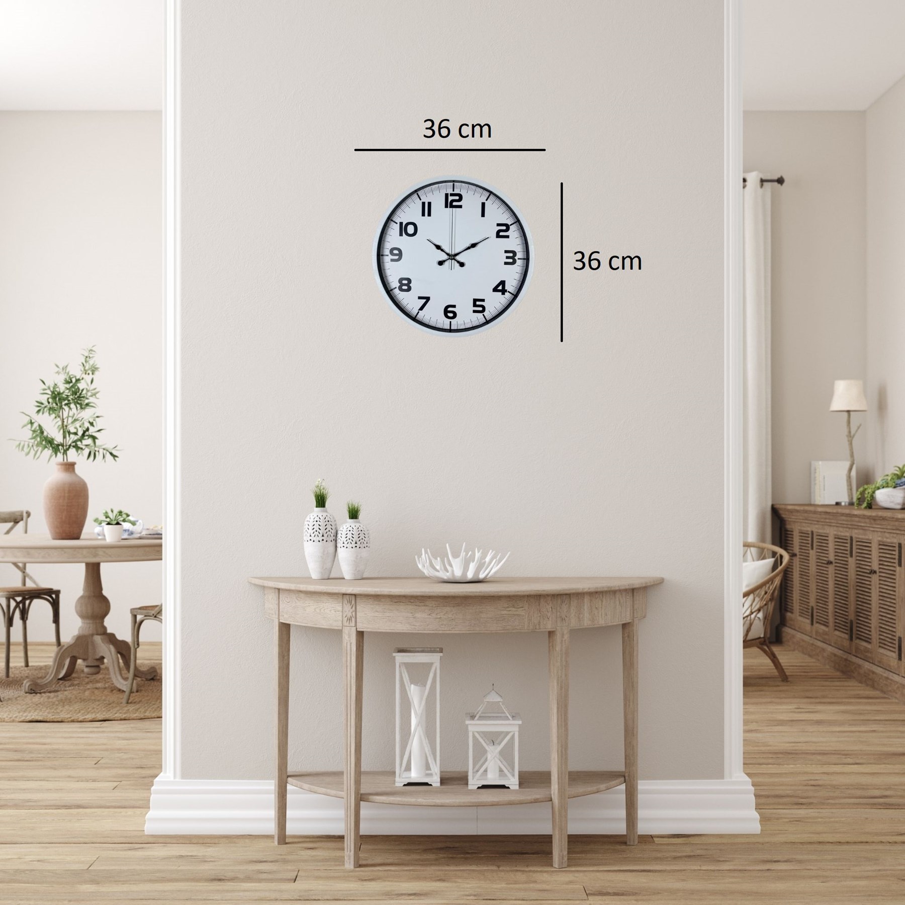 Sade ve zarif tasarımıyla öne çıkan 36 cm beyaz duvar saati, yaşam alanlarınıza ferah ve modern bir dokunuş kazandırır. Beyaz rengin temiz ve aydınlık etkisi sayesinde hem klasik hem de modern dekorasyonlara kolayca uyum sağlar. Büyük ve okunaklı rakamları ile zamanı uzaktan rahatlıkla takip edebilirsiniz.