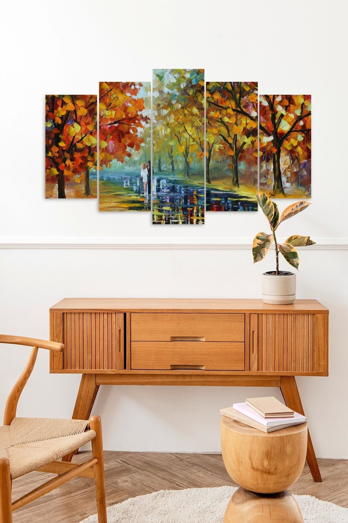 - Modern tasarımıyla evinizin dekorasyonuna şıklık katan Sonbahar yağmur 5 parçalı MDF tablo, çağdaş yaşam alanlarınızın vazgeçilmez bir parçası olacak; - Doğal ahşap malzemesiyle hem dayanıklılık hem de estetik bir görünüm sunan bu tablo, mekanınıza sıcak ve samimi bir atmosfer katıyor; - 5 parçadan oluşan set halinde gelen bu tablo, farklı boyutlardaki parçalarıyla duvarlarınıza dinamik bir dokunuş sağlıyor; - Kolay temizlenebilir yüzeyi sayesinde pratik kullanım sunan Sonbahar yağmur MDF tablo, uzun süreli kullanım için idealdir;