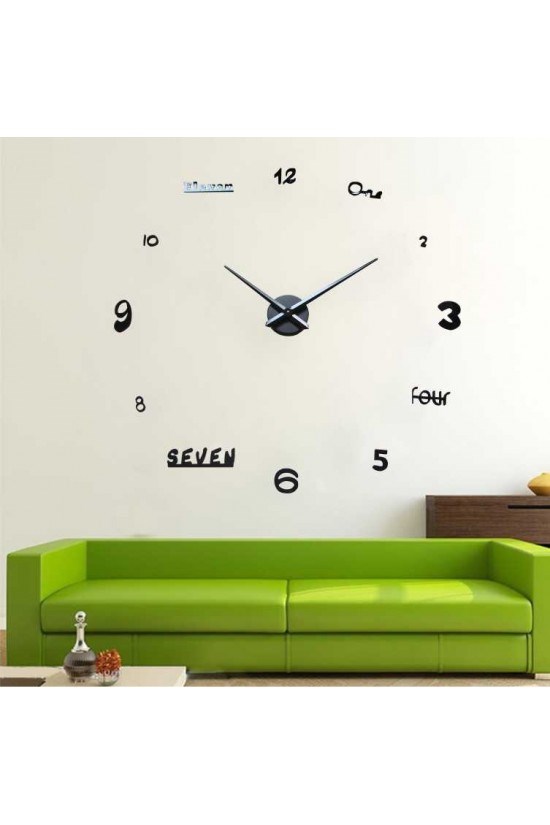 Modern Siyah Karışık Rakamlı DIY Duvar Saati