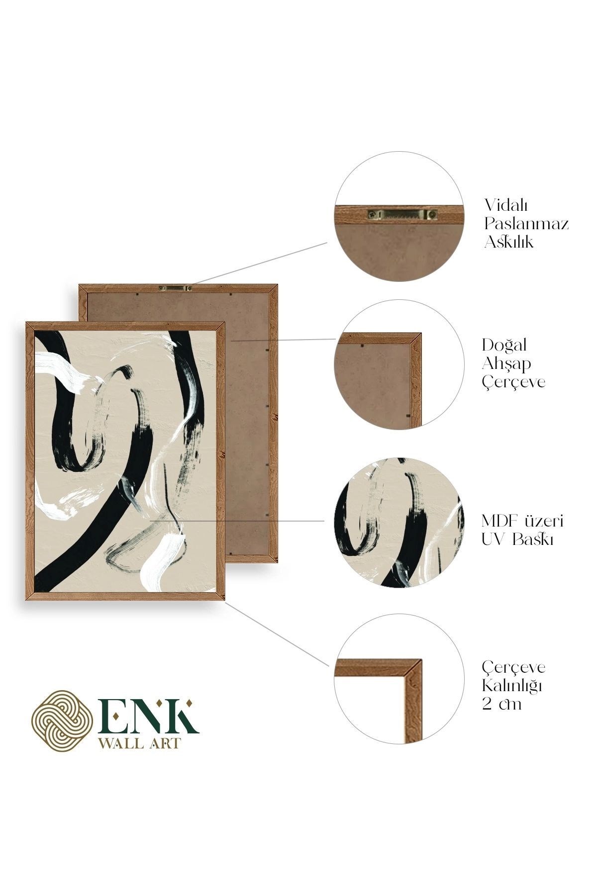 Tablolarımız gerçek ahşap çerçevelidir, çerçeve görünümlü değildir. ; ENK Wall Art Olarak Ahşap Çerçeveli Tablolar Üretiyoruz. ; Tablolarımız tek parça, 3 Parça, 5 Parça ve daha çok kategoride tasarımcılarımız tarafından ev ve ofisleriniz duvarları süslemek için tasarlanmaktadır. ; Ahşap Çerçeveli Duvar Tabloları ile yaşam alanlarınıza yepyeni bir görünüm kazandırın. ; Yıllarca dayanacağından emin olduğumuz sağlam çerçevelere sahip yüksek kaliteli ahşaptan üretilmiştir. ; İster bir köşeyi süslemek isteyin, ister evinizi yenilemek , bu ahşap tablolar herhangi bir yaşam alanına stil ve işlev getirecektir. ; Duvara kolay bir şekilde monte edilir. ; Uzun ömürlü kullanım için sağlam ahşap çerçeveden yapılmış, dayanıklı ve güçlü. ; Duvara monte edilebilir tasarımı, yaşam alanlarında veya yatak odalarında duvara kolayca asılmasını sağlar. ; Pürüzsüz üst yüzeyi temiz kalmayı kolaylaştırır. ; Herhangi bir stile uyacak şekilde çeşitli renklerde gelir. ; Kolay yeniden düzenleme için hafif ve portatif. ; Küçük oturma odaları veya dar alanlar için mükemmel boyut. ; Eve taşınma hediyesi olarak idealdir. ; Herhangi bir evin dekorunu süslemek için harika bir yol. ; Herhangi bir modern veya çağdaş iç tasarıma mükemmel bir katkı. ; Tablo içi 3 mm mdf (ahşap) malzeme üzeri uv baskıdır. ; Renkler canlı ve solma yapmaz. ; Kırılma, bükülme ve çizilmeye karşı dayanıklıdır.;