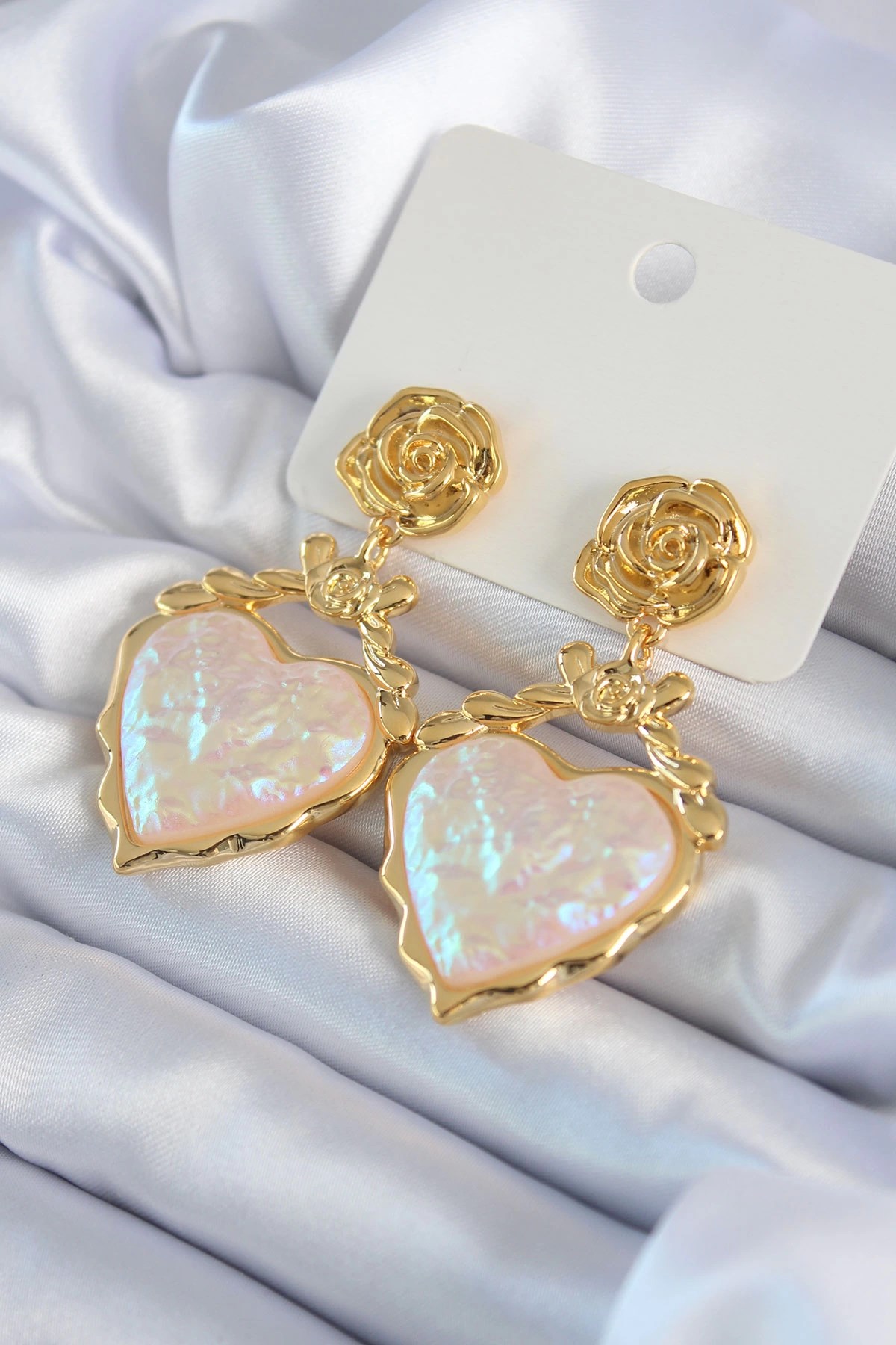 Mey İthalat® Gold Renk Gül Sallantı Kalp Model Pirinç VİP Kadın Küpe